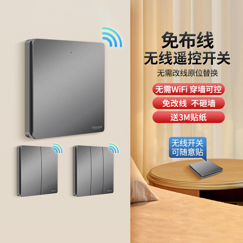 德力西遥控开关无线感应开关免布线智能开关远程遥控开关控制器灰