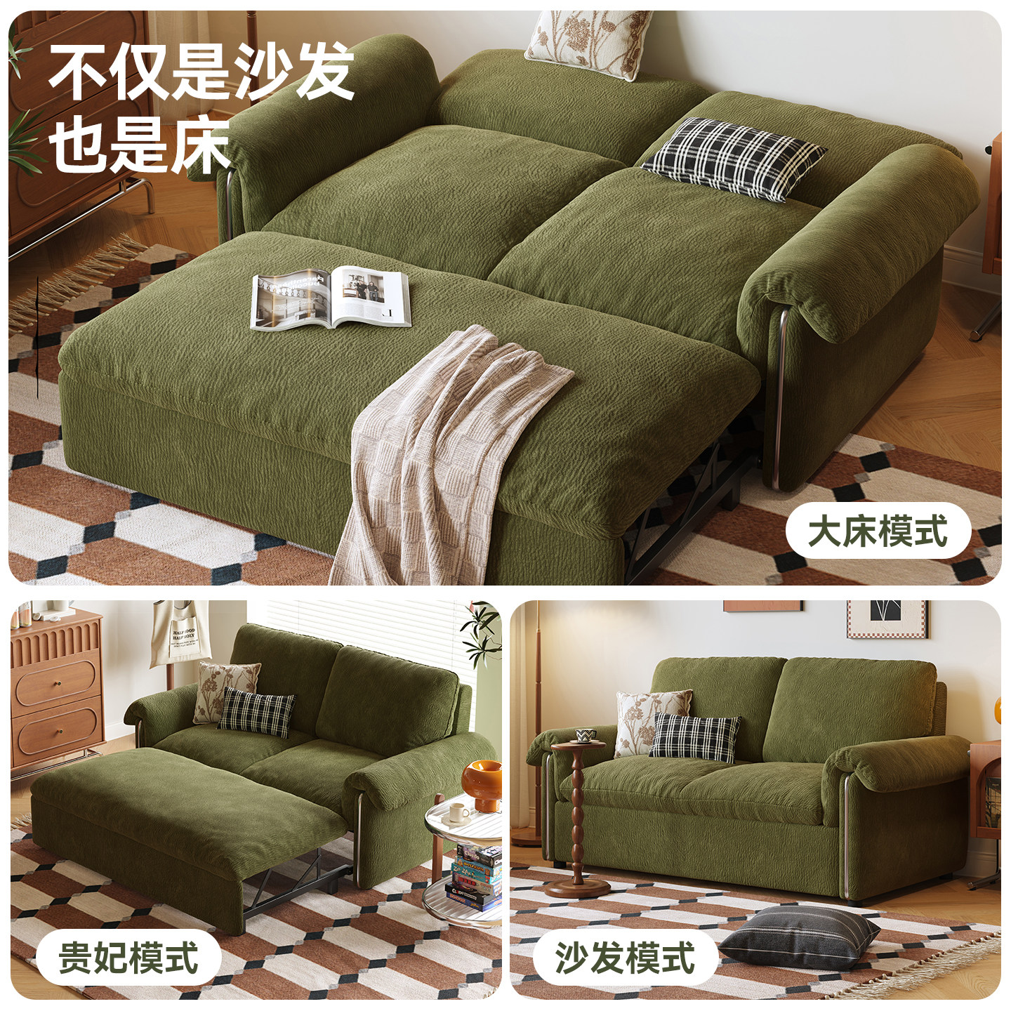木宫匠家具浮光沙发床布艺一体两用沙发书房可拆洗多功能可折叠式