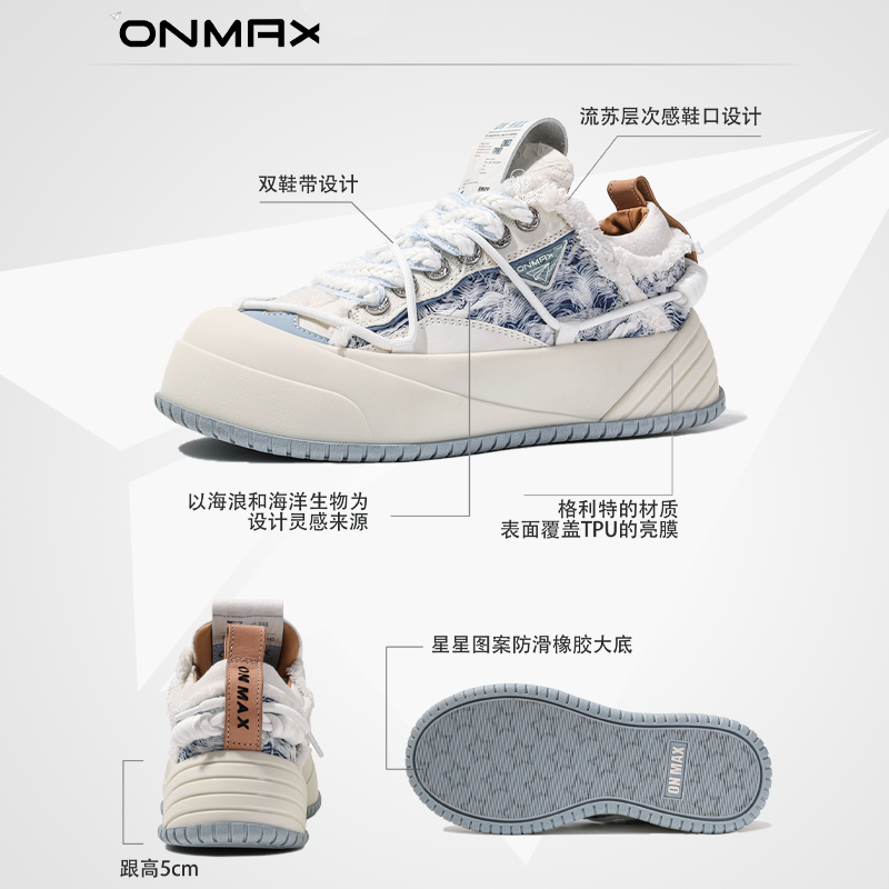 【左航于文文同款】onmax海洋纸飞机帆布鞋厚底增高2026秋冬男女