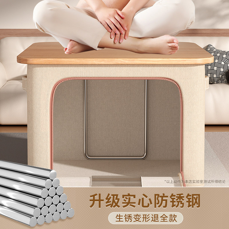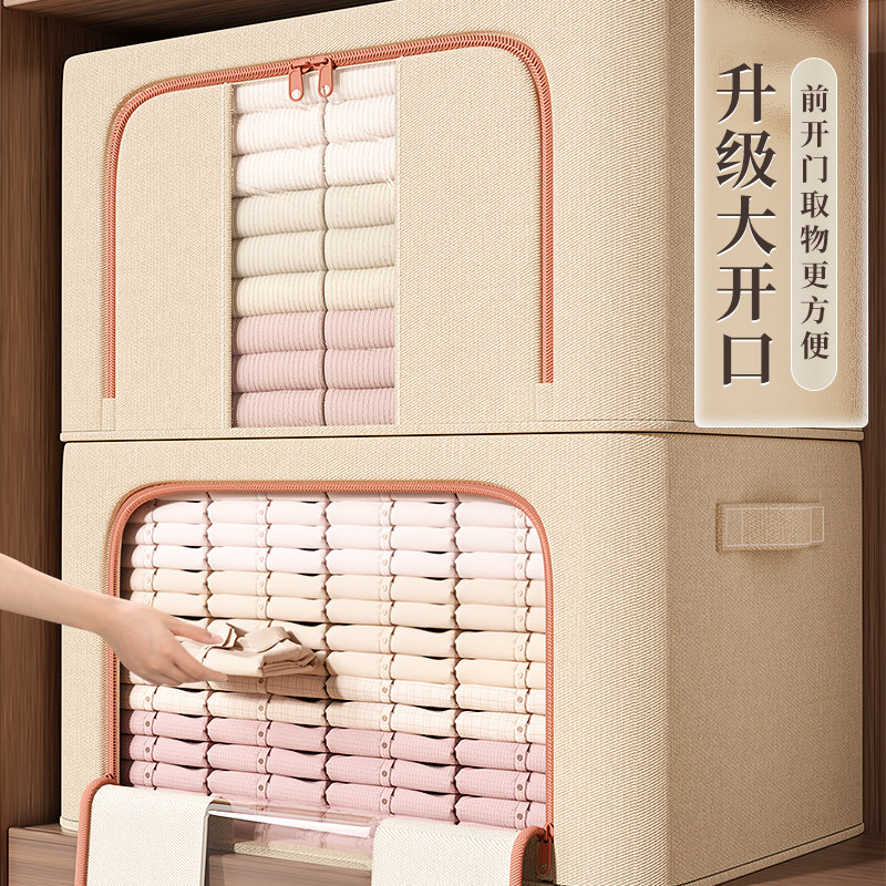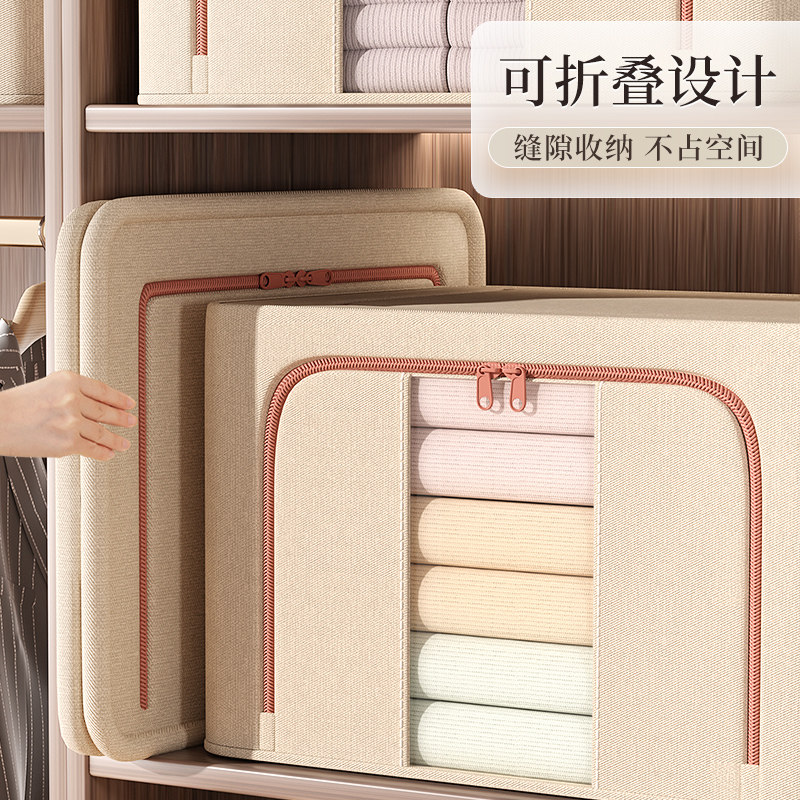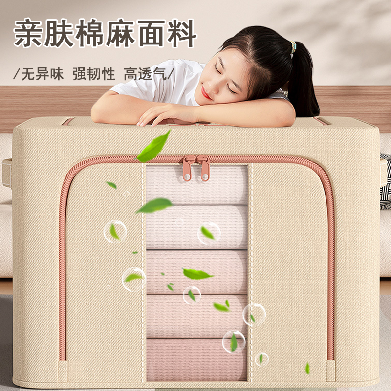 加厚收纳箱大容量棉麻衣服衣物被子折叠衣柜布艺整理储物箱子钢架
