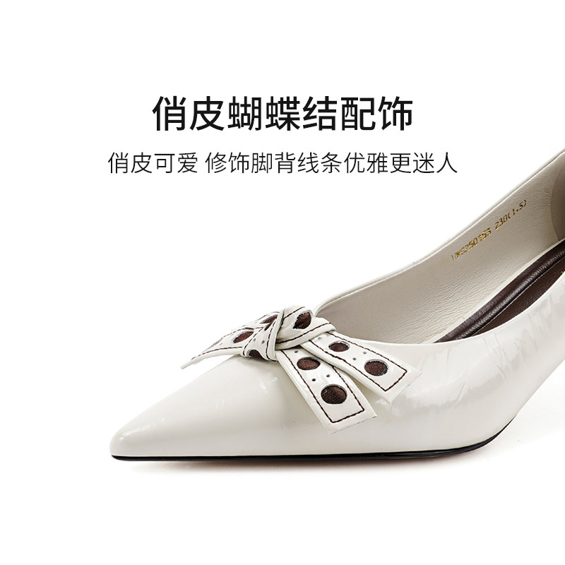 哈森细跟职业通勤鞋2025春季新款尖头牛皮革浅口单鞋HWS250153