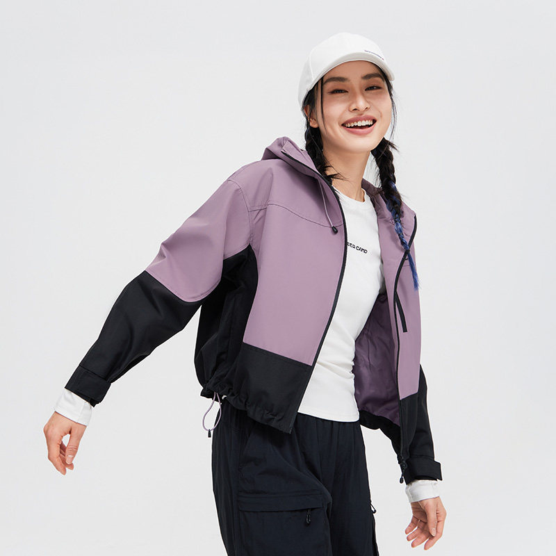 拓路者春秋季户外运动夹克女宽松连帽拼色徒步登山短款小个子外套