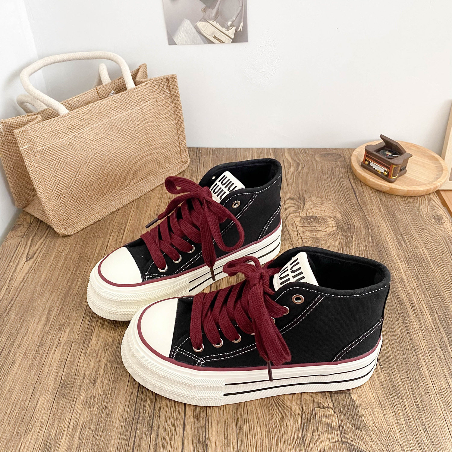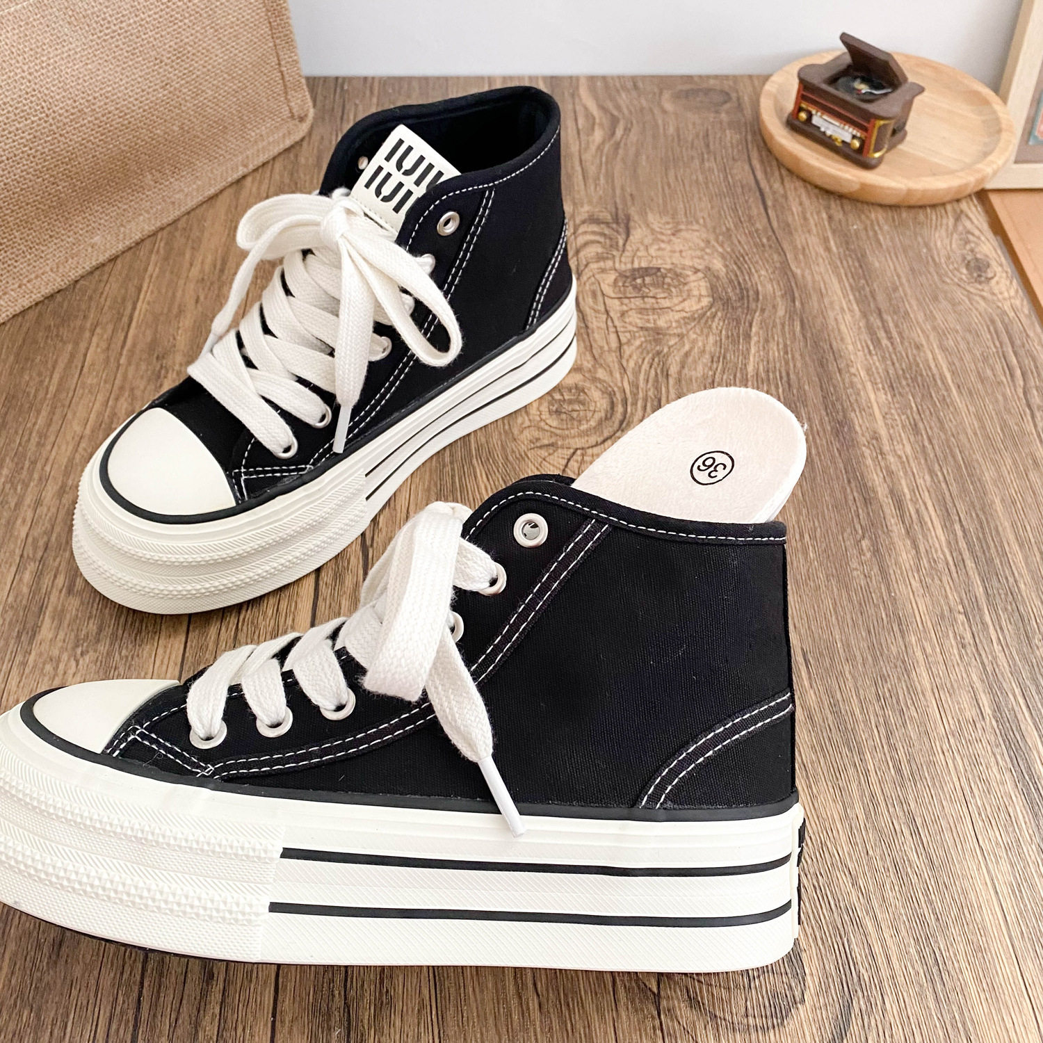 【明星同款】Wander around春秋款黑色厚底增高休闲板鞋男女同款