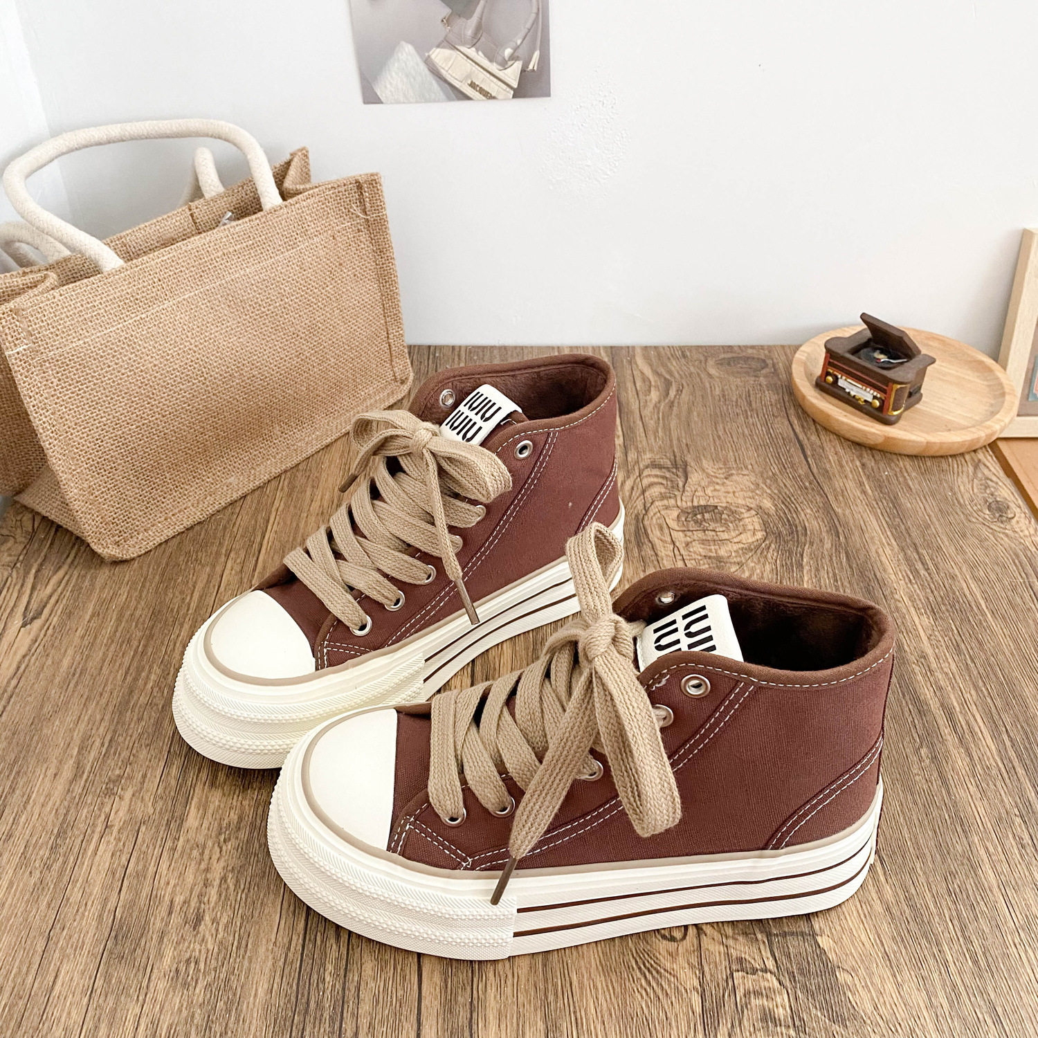【明星同款】Wander around 复古棕色厚底增高休闲板鞋男女同款