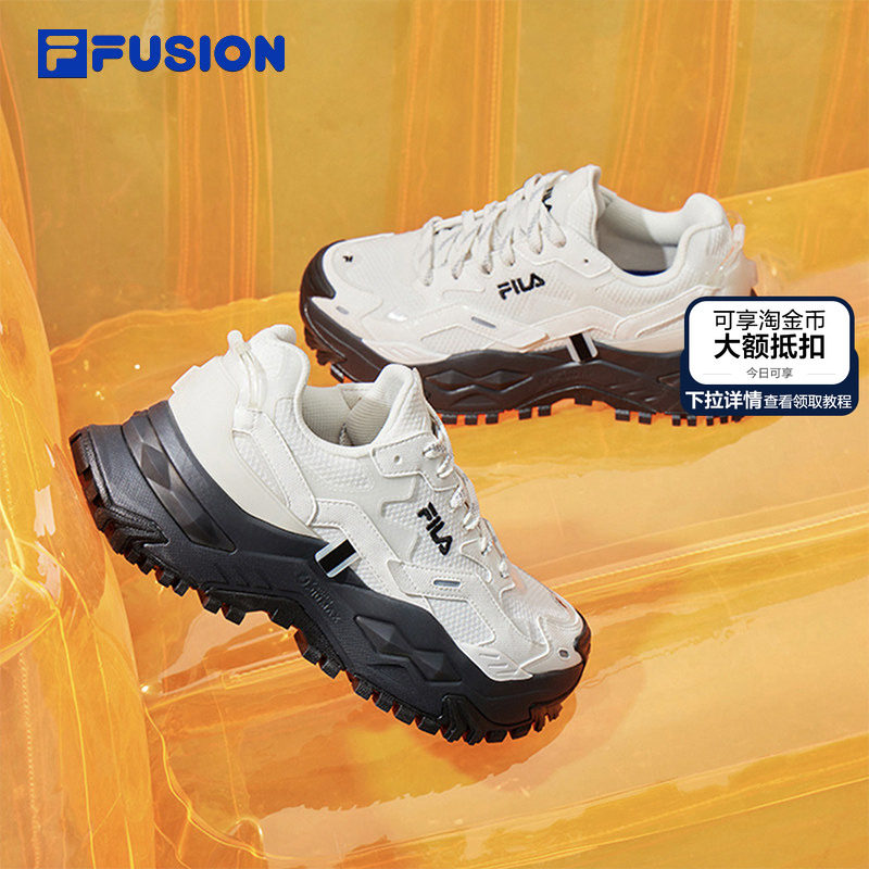FILA FUSION斐乐潮牌硬糖黑白老爹鞋女鞋厚底鞋休闲鞋增高运动鞋