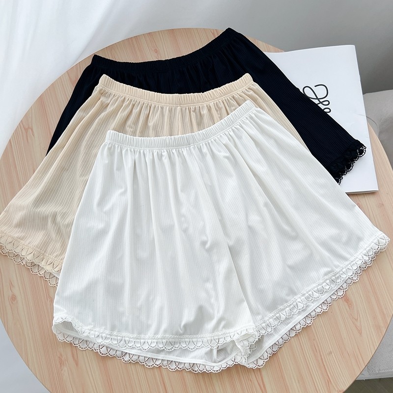 夏季薄款冰丝安全裤女防走光打底裤可外穿短裤睡裤保险裤白色黑色