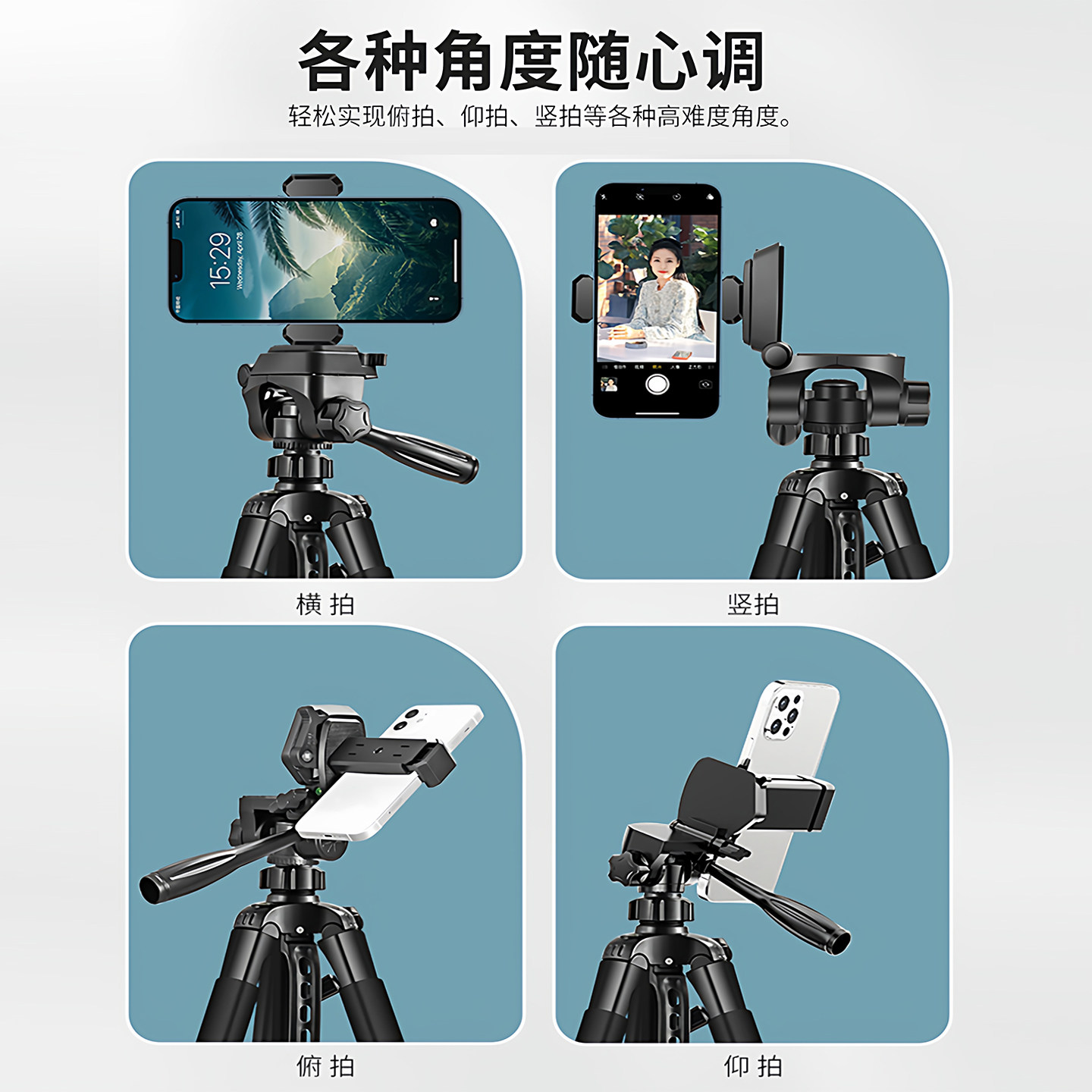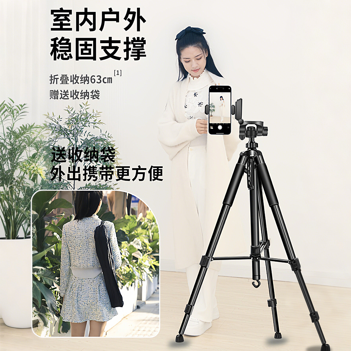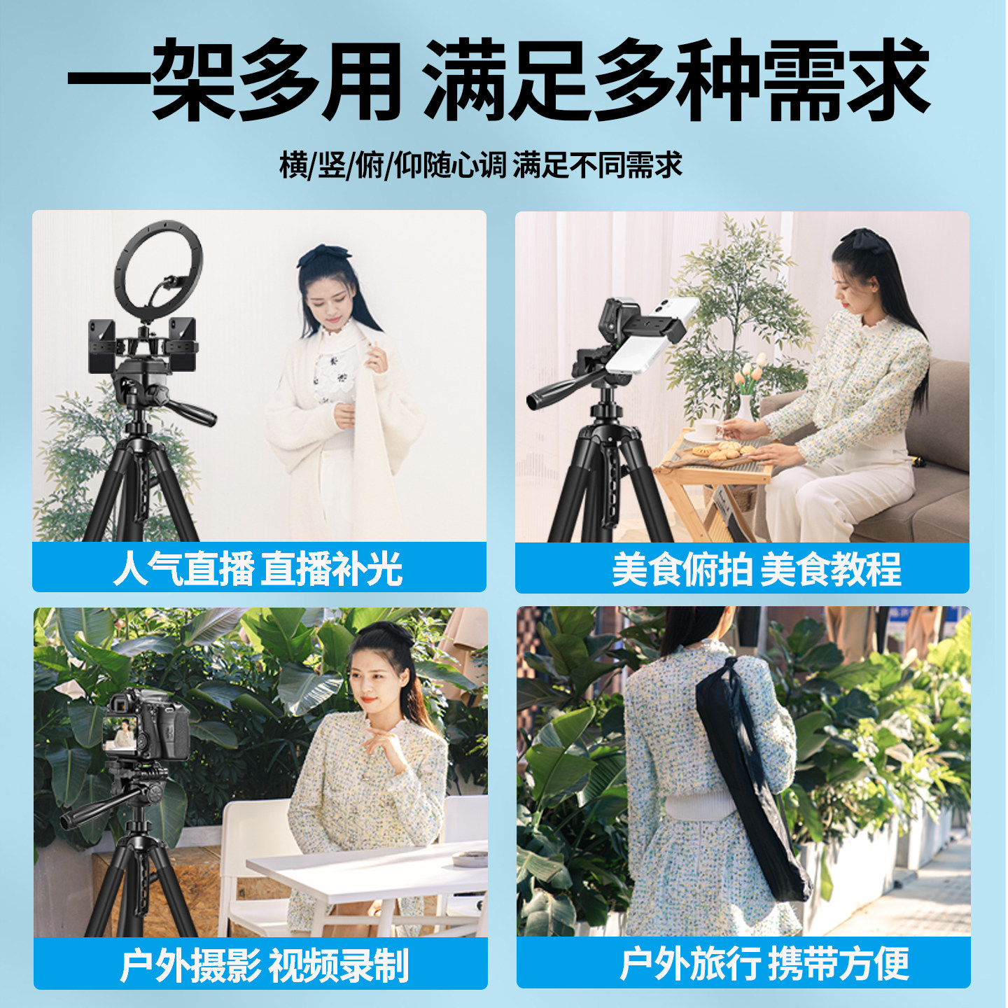 新款手机三脚架带补光灯直播相机支架单反微单摄影专用架加粗碳素钢自拍便捷专用防抖稳固旋转落地式三角支架