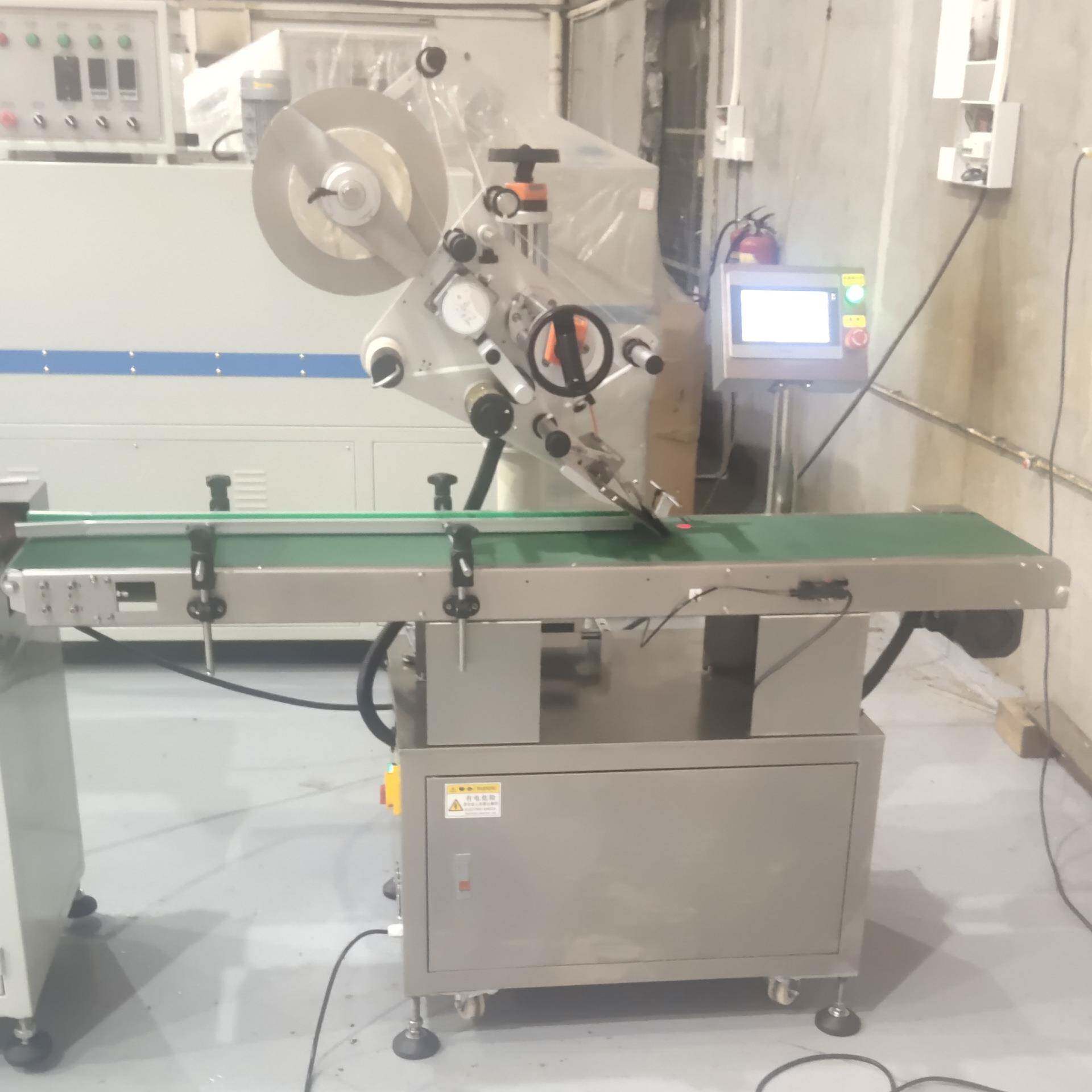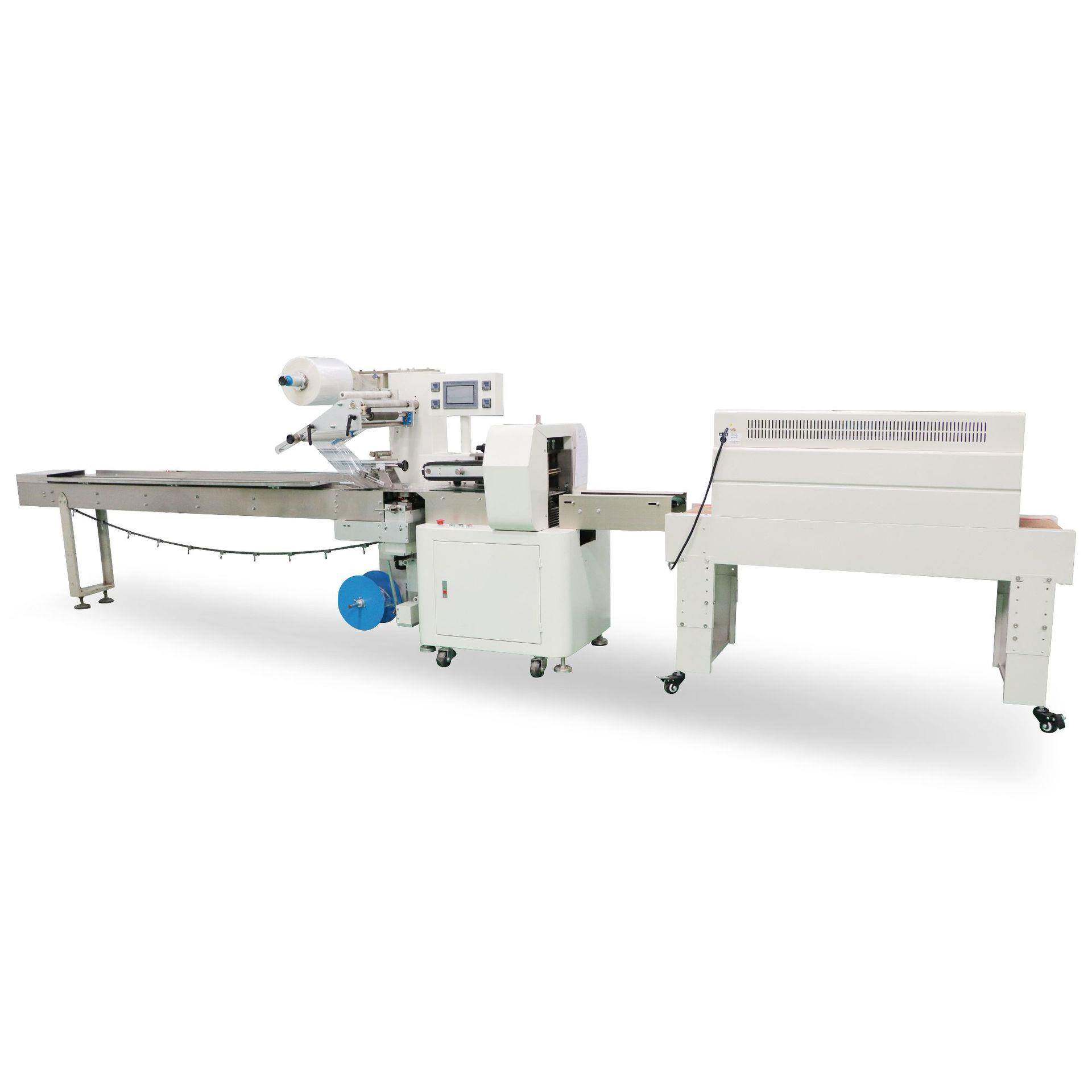 五金挂件速度快的枕式收缩膜包好后自动贴标机器自动套袋收紧膜机