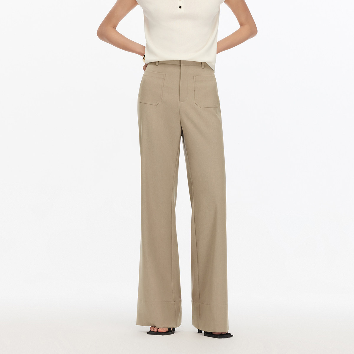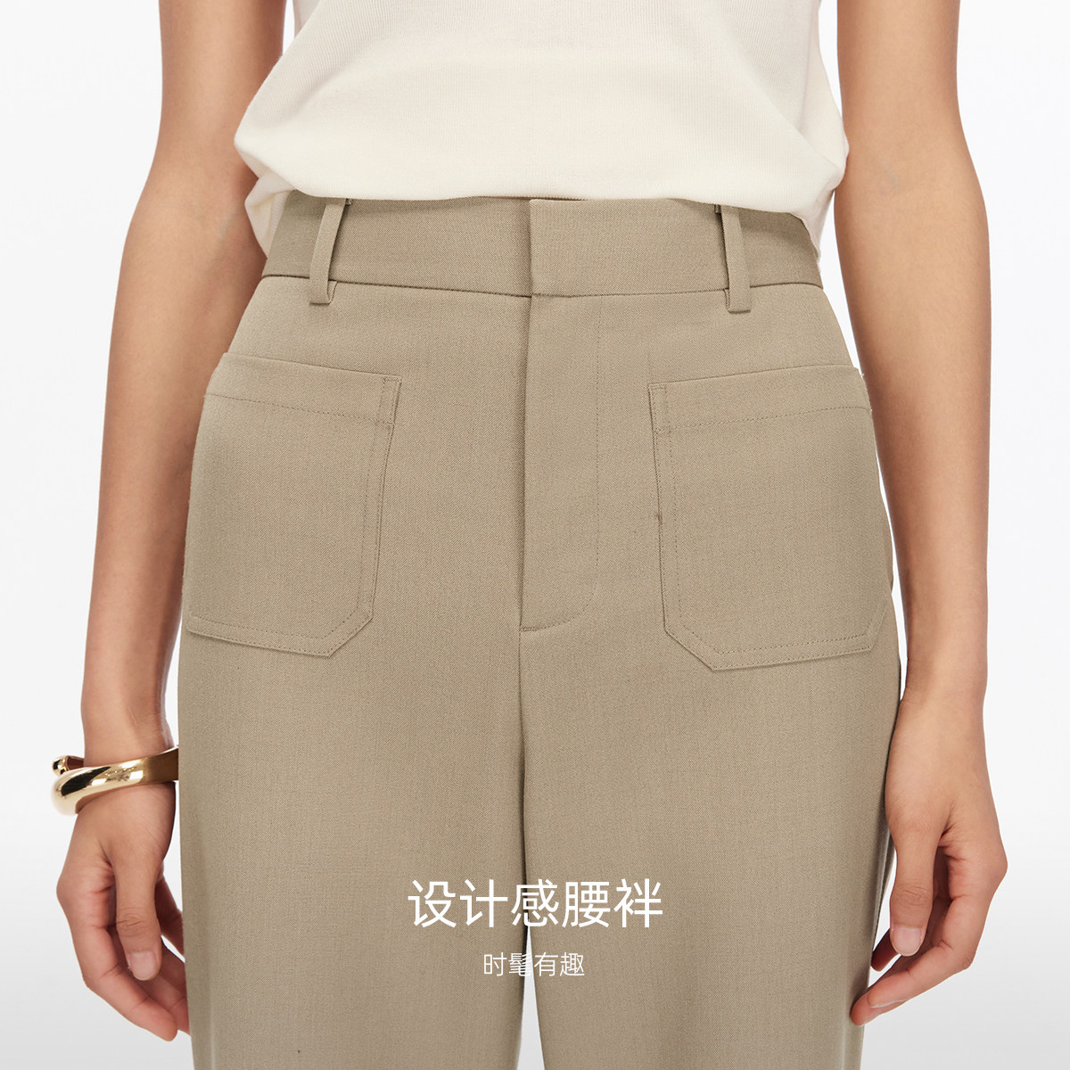 Vero Moda休闲裤女2025秋老钱风高腰显瘦修身卡其色微喇休闲裤