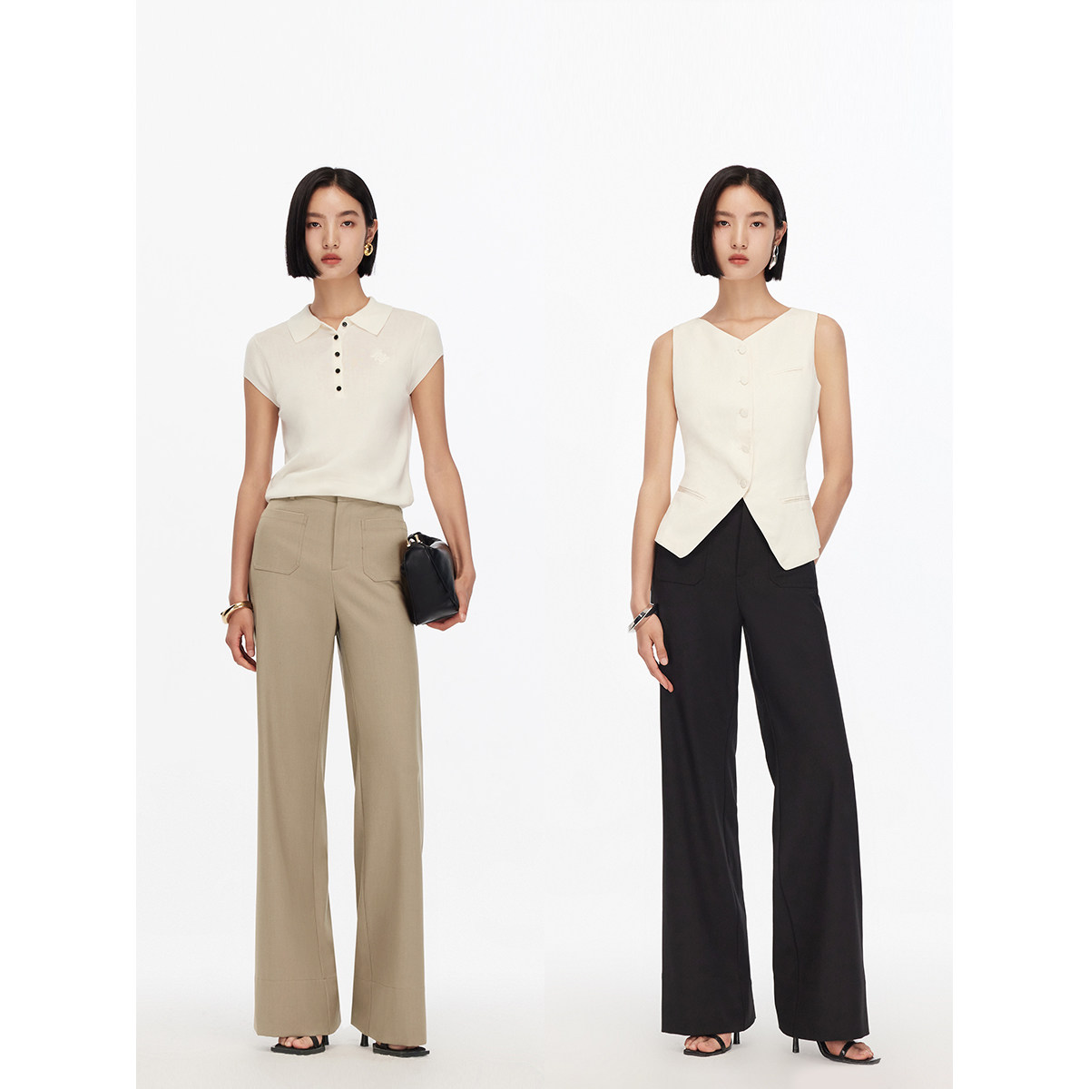 唐狮DESSO秋冬新款糯米裤高腰垂感宽松加绒直筒阔腿裤5