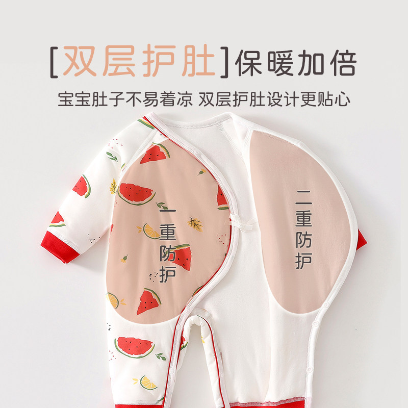 婧麒新生儿婴儿衣服秋冬夹棉满月纯棉初生宝宝秋装连体衣a类爬服