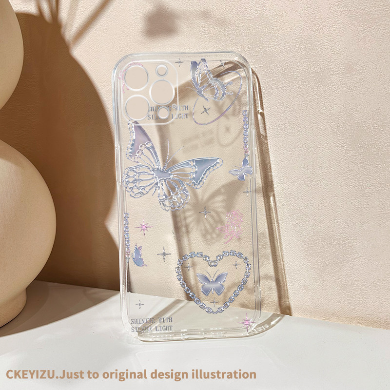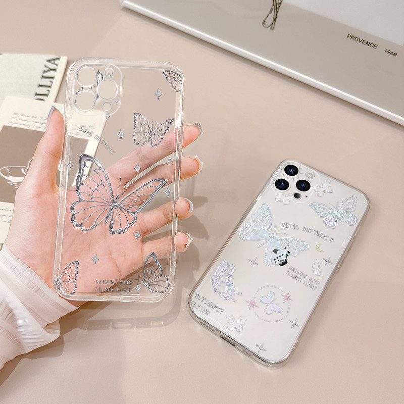 适用于苹果14手机壳16/15新款iPhone17promax小众蝴蝶13pro硅胶12mini直边11防摔7/8p透明se3女x全包6s薄plus