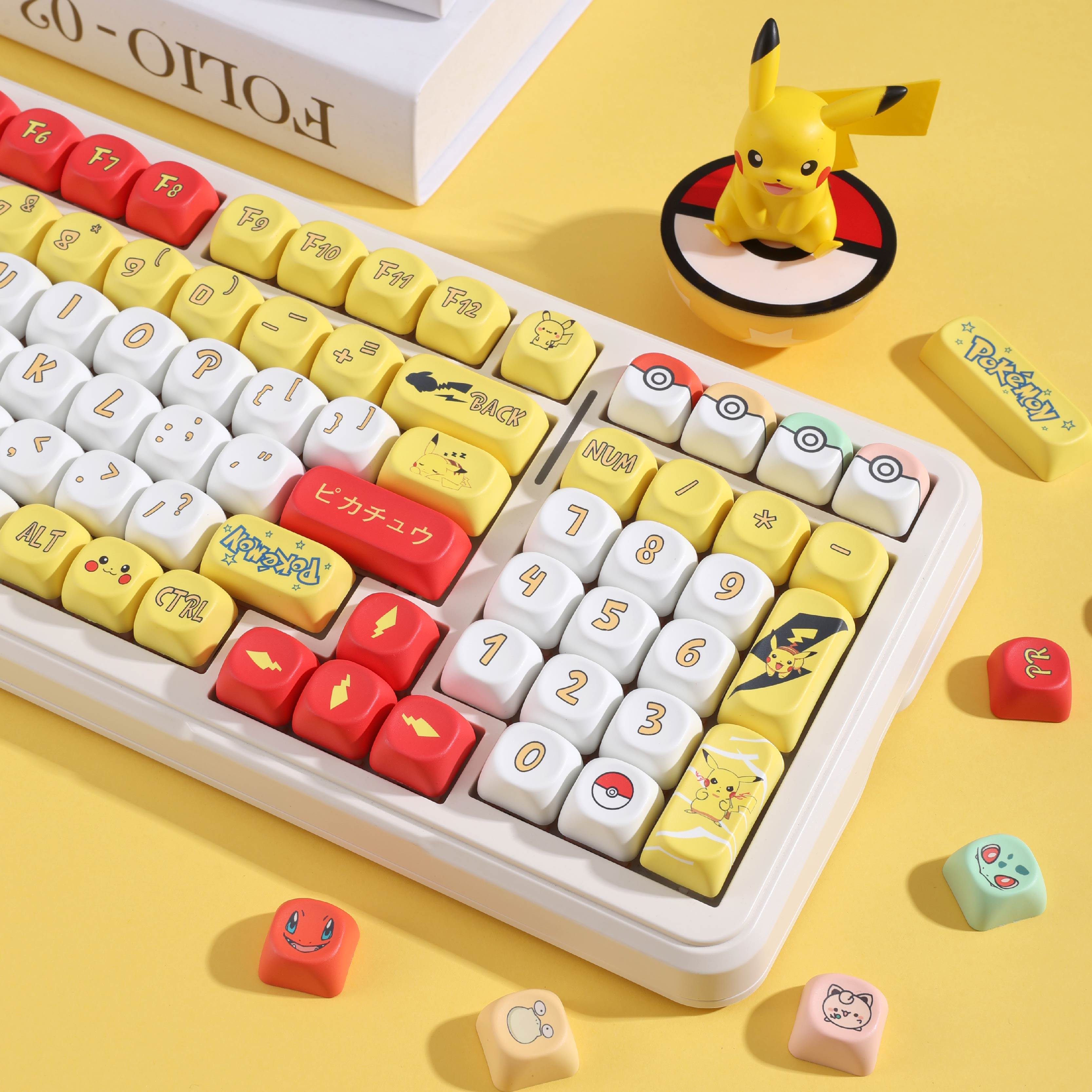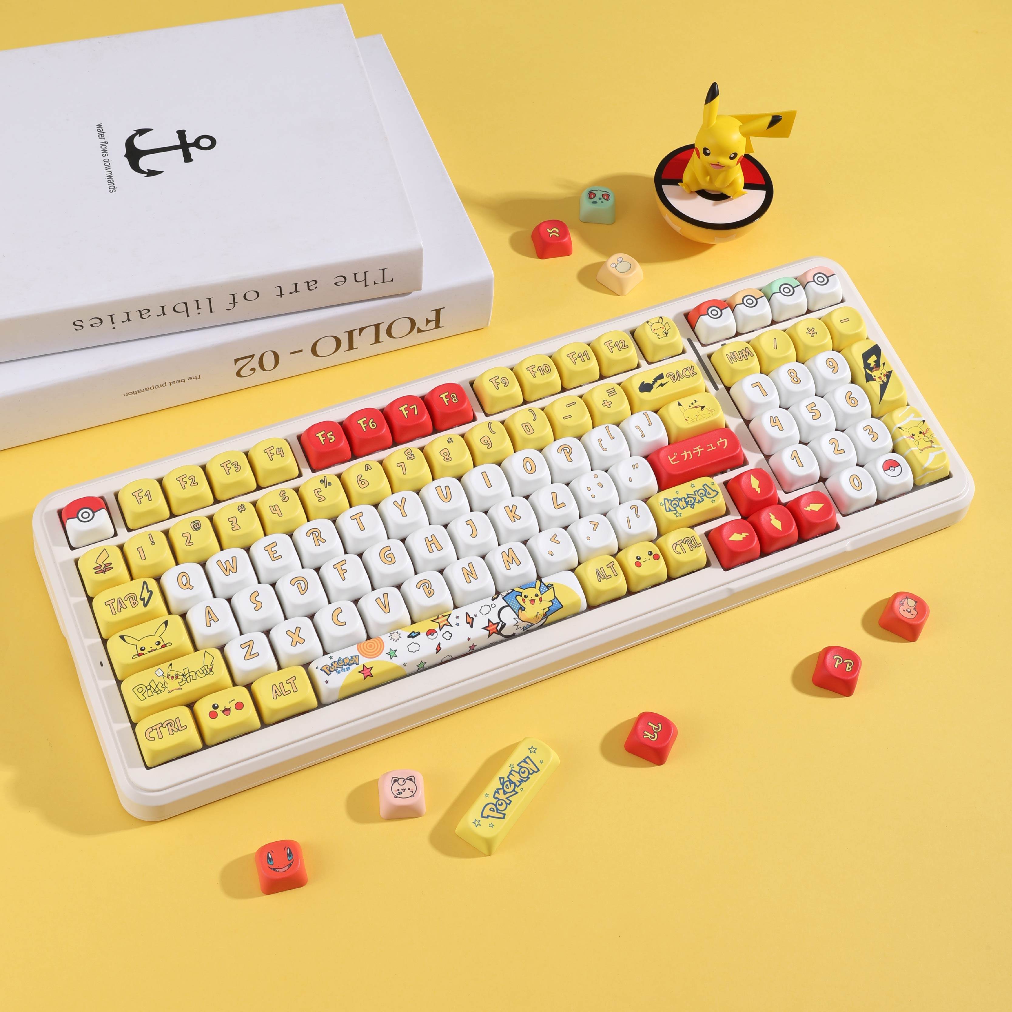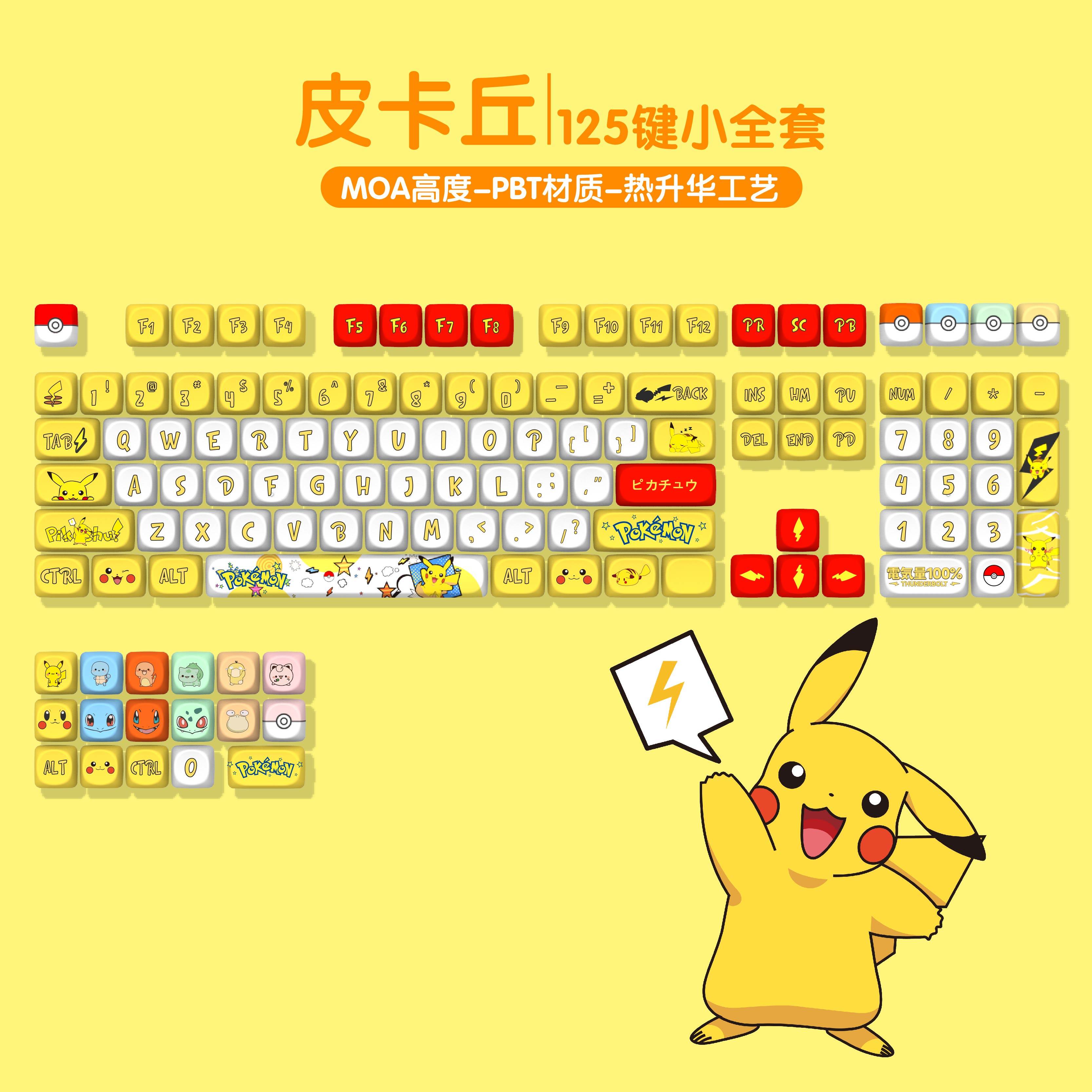 皮卡丘键帽moa高度五面热升华PBT材质动漫女生可爱键帽F87 F104