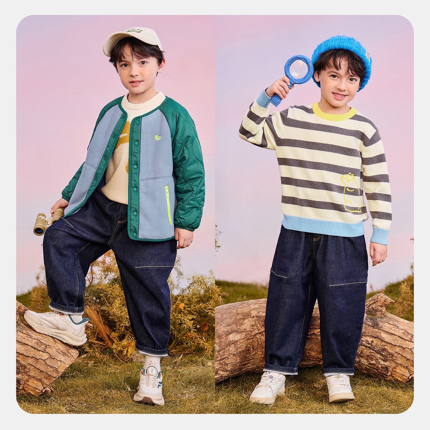 [加绒软牛仔]迷你巴拉男童儿童裤子冬新品亲肤不易褪色萝卜裤