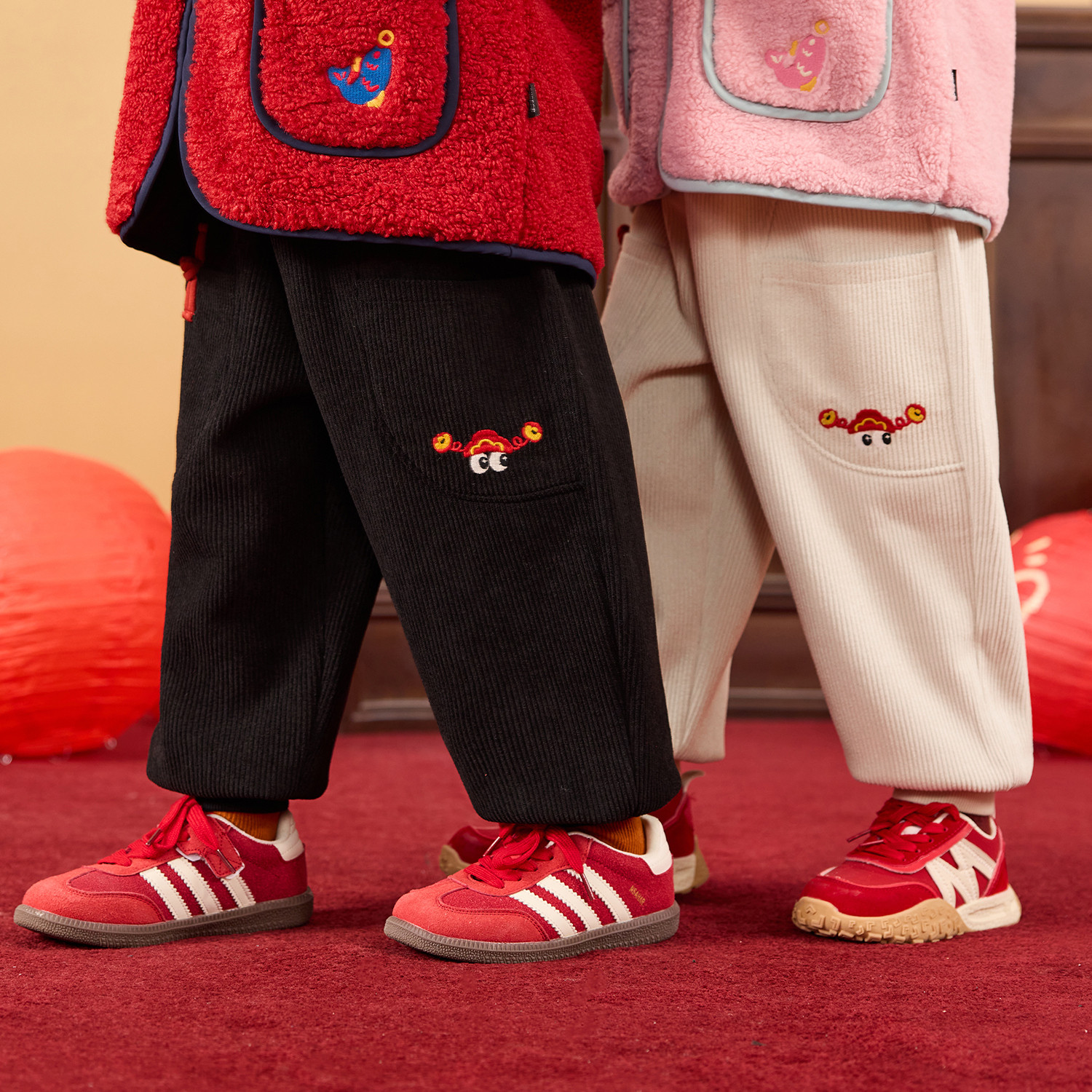 嘟嘟家儿童裤子冬季加绒加厚宝宝长裤灯芯绒男童束脚裤冬季拜年服