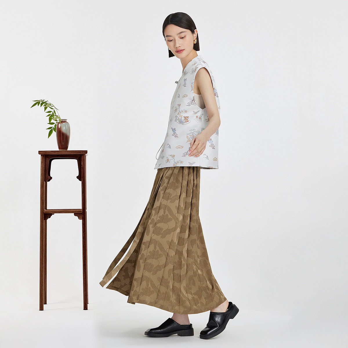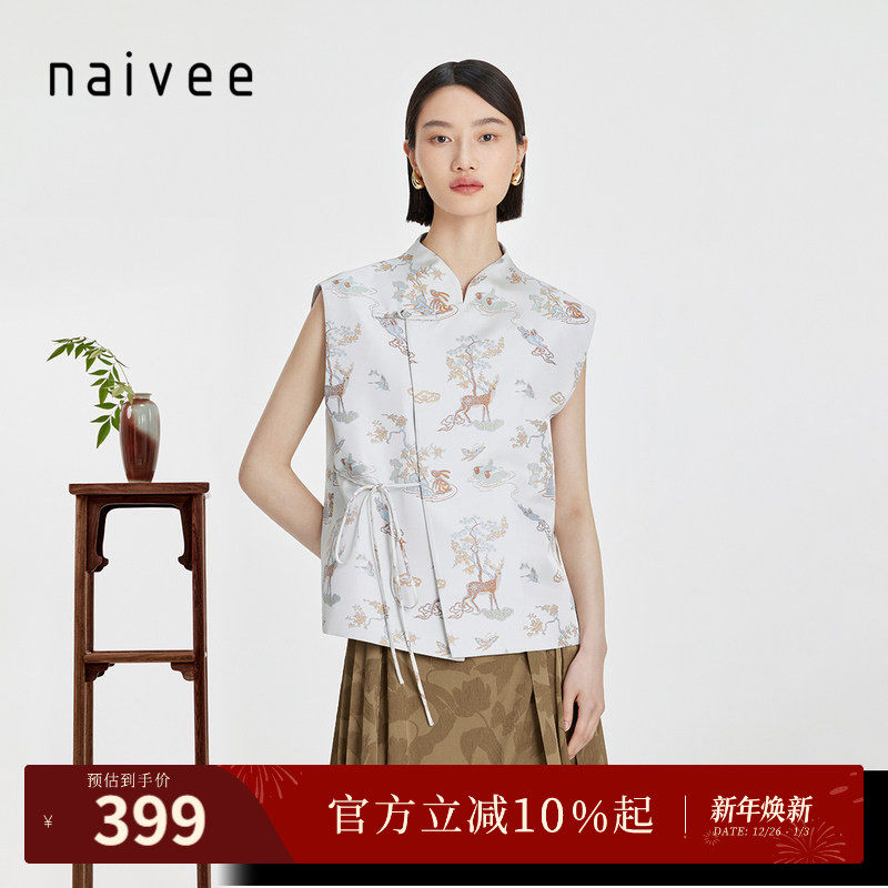商场同款naivee纳薇秋新中式提花国风盘扣无袖马甲坎肩上衣