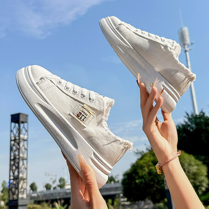 帆布鞋子女2026新款春秋季爆款时尚气质小白鞋厚底百搭休闲运动鞋