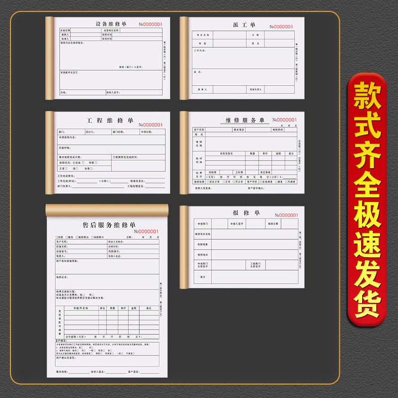 派工单三联售后维修服务工单上门工时单据施工检修单安装结算清单