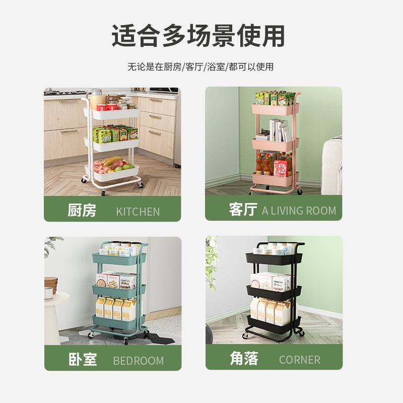 移动收纳架置物架落地多层带轮客厅卧室宿舍学生蔬果架小推车塑料