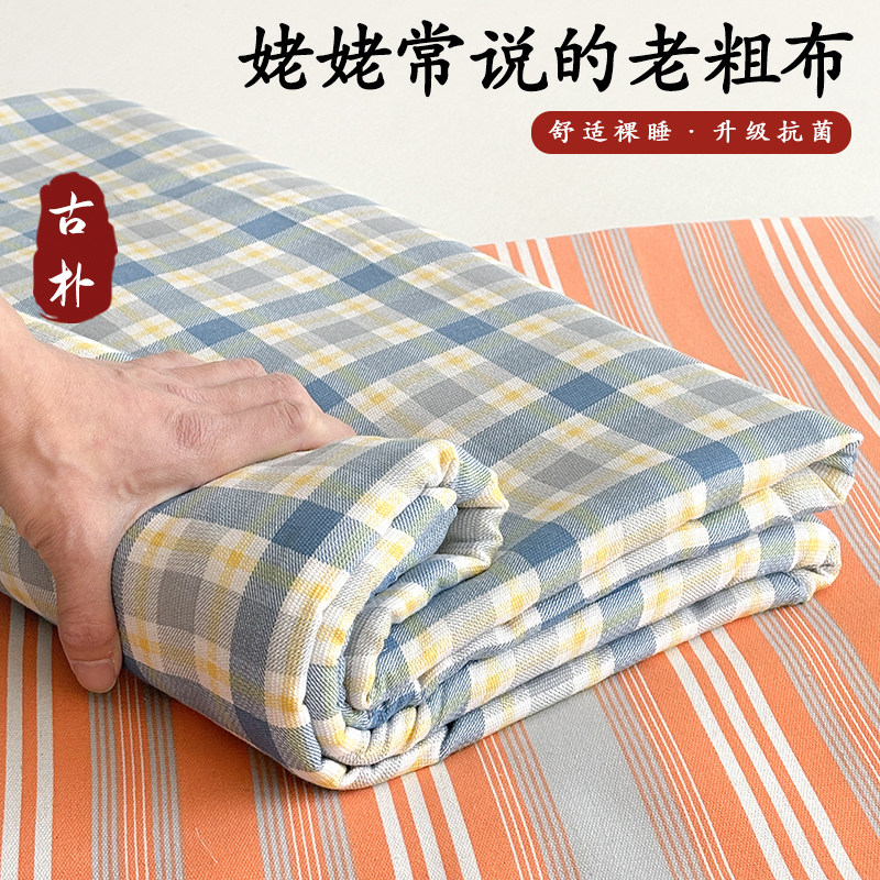 纯棉老粗布床单单件双人100全棉单人宿舍加厚被单枕套三件套秋冬