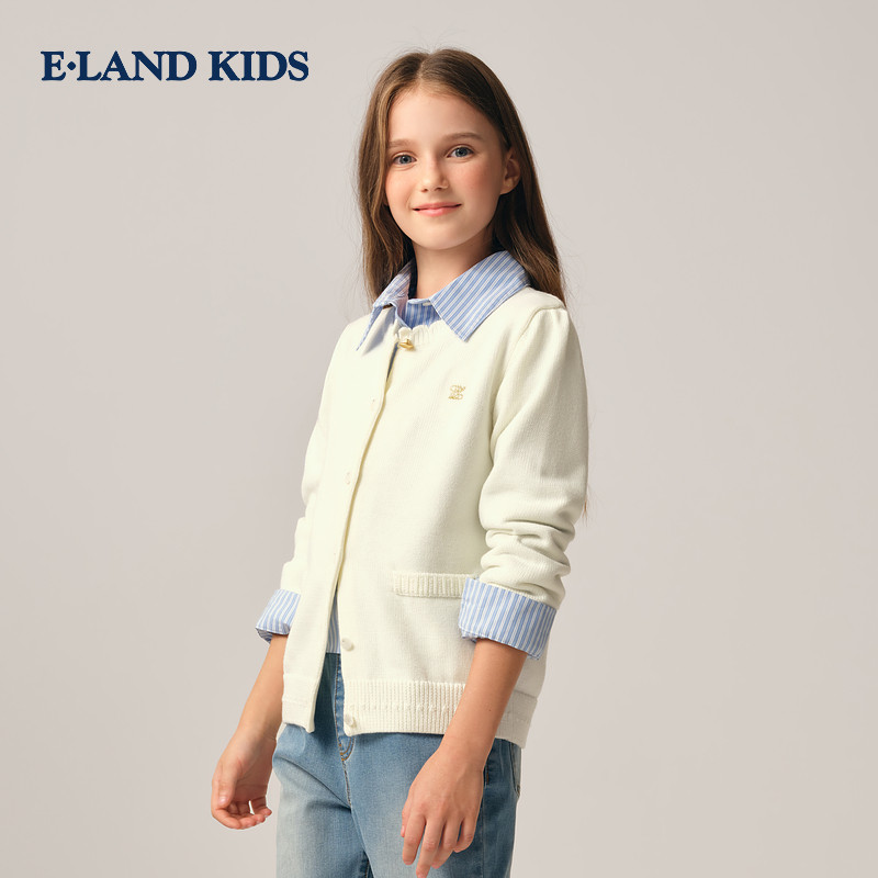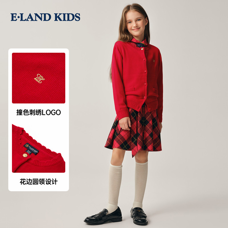 【含绵羊毛】eland kids衣恋童装女童针织开衫25秋冬新品圣诞毛衣