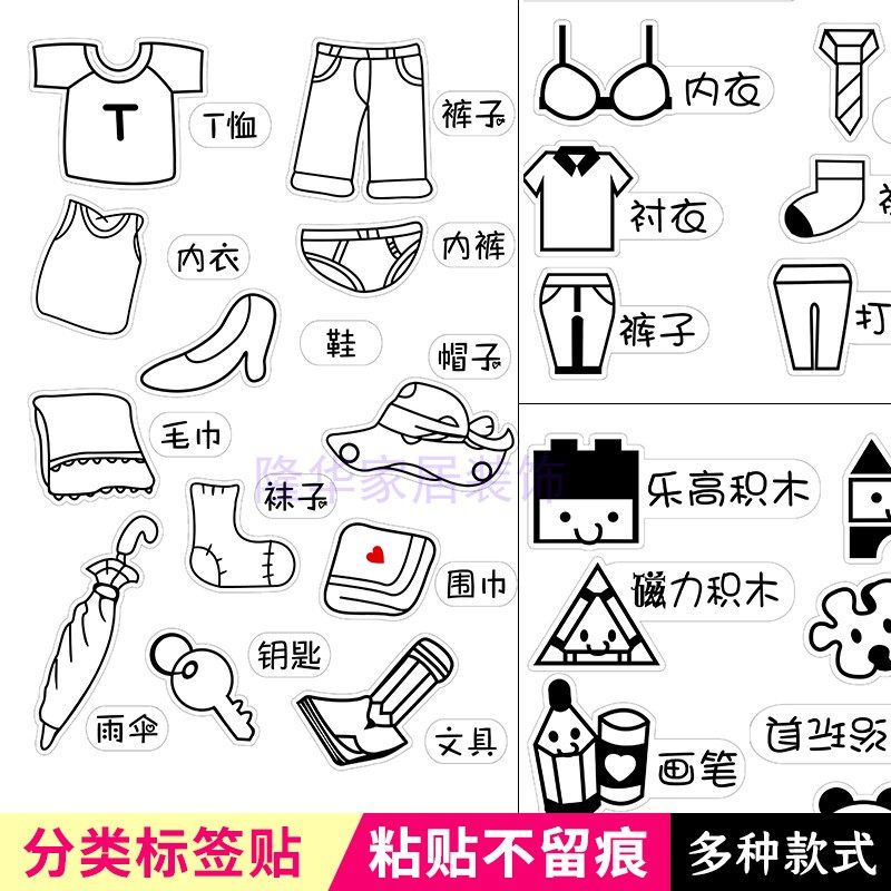 创意卡通生活标签儿童衣柜分类衣物分类墙贴纸鞋柜玩具分类备注贴