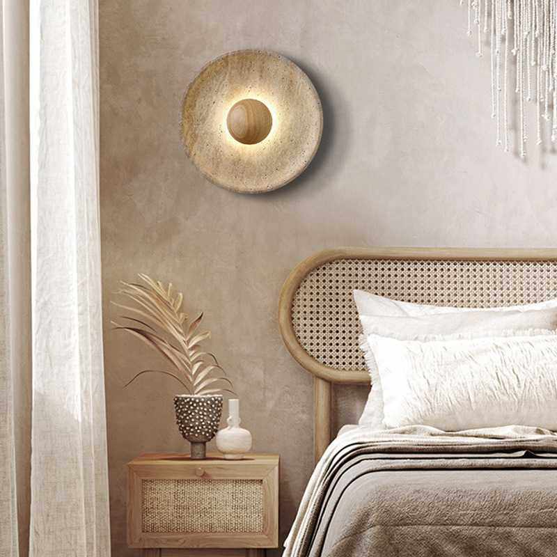 黄洞石侘寂风卧室床头壁灯创意设计师过道玄关复古民宿客厅墙壁灯