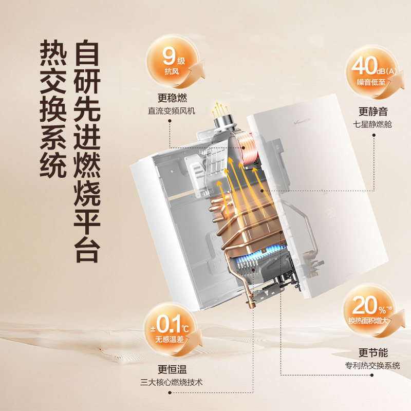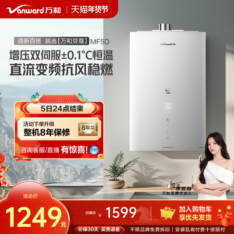 万和家用天燃气热水器一级节能双伺服恒温静音16L热水器豆蔻MF5D
