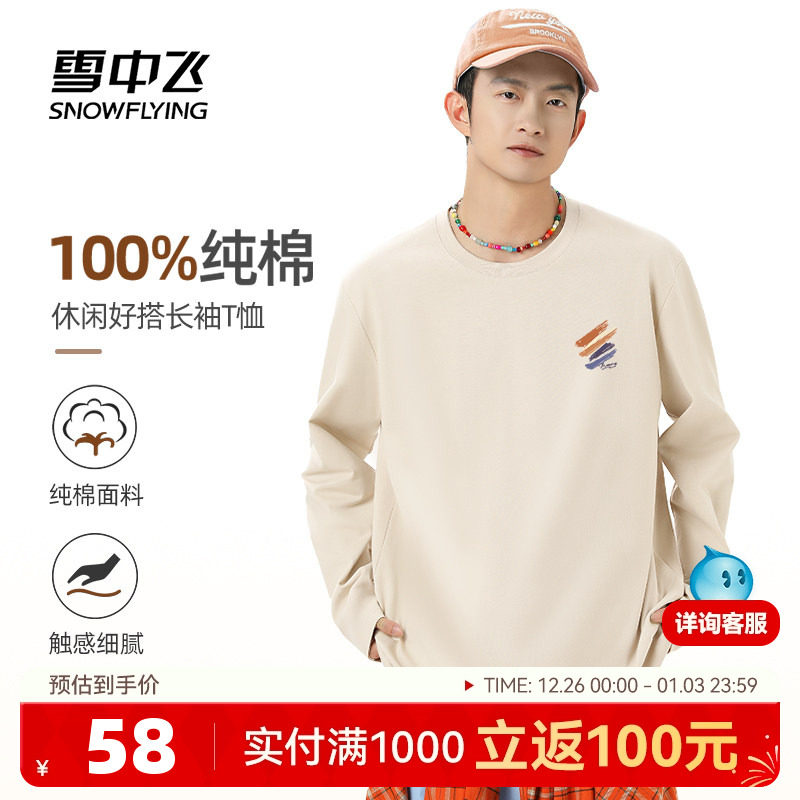 雪中飞长袖t恤男春秋2026新款纯棉内搭上衣男士圆领宽松打底衫PC