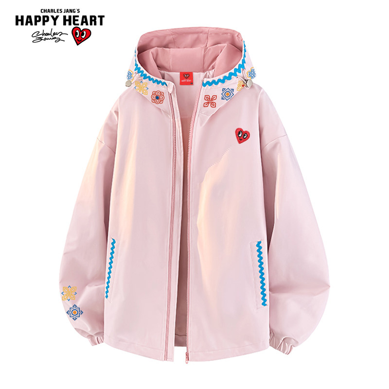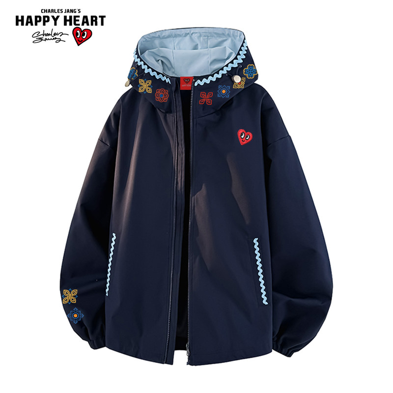 查尔斯桃心 美式撞色拼接连帽夹克男春上新潮流休闲防风情侣外套