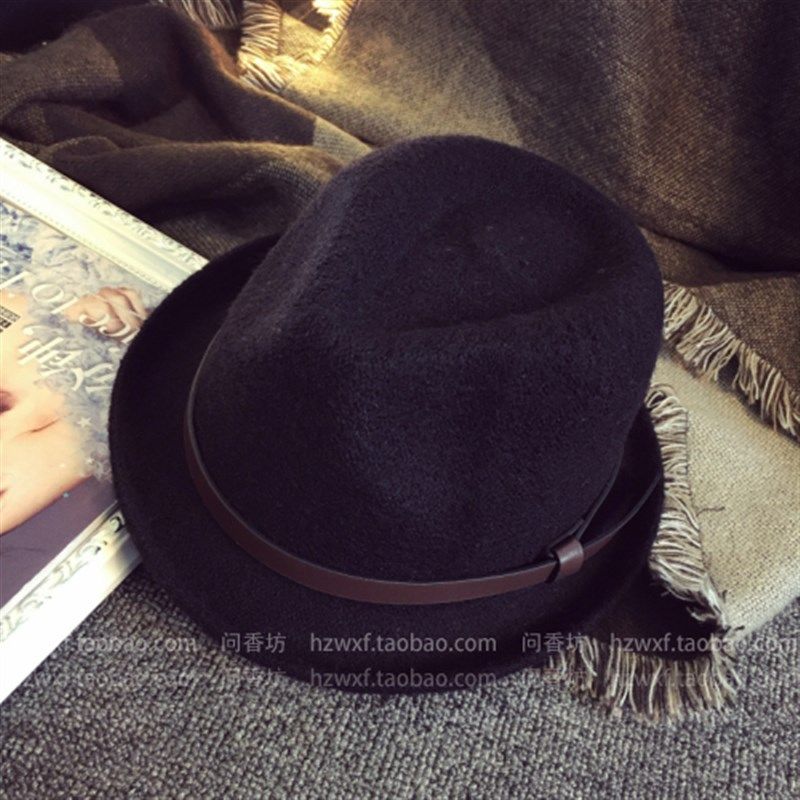 秋冬英伦时尚复古皮带羊毛礼帽小沿卷边男女士锥顶爵士礼帽潮韩版