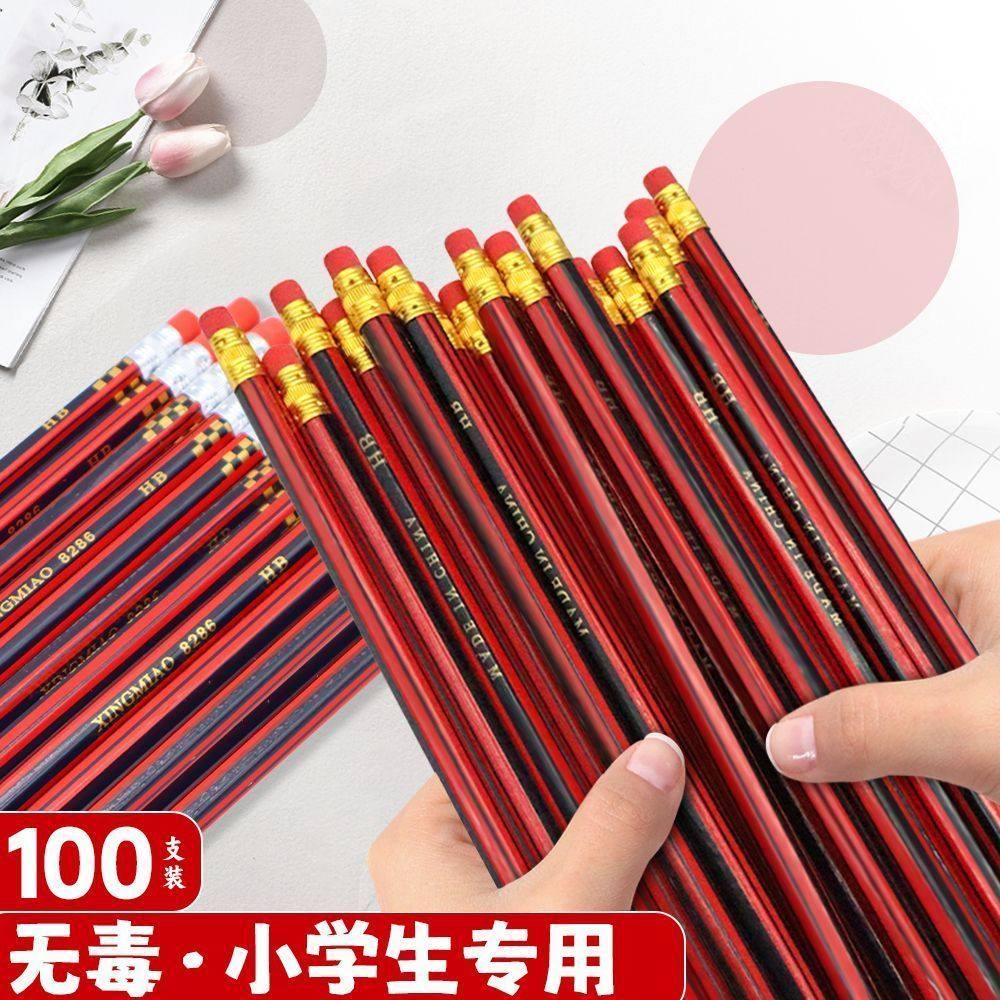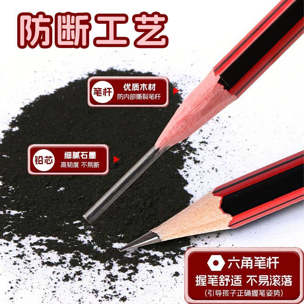 红杆2b铅笔无铅小学生专用带橡皮儿童hb考试六角铅笔素描绘画牙贴