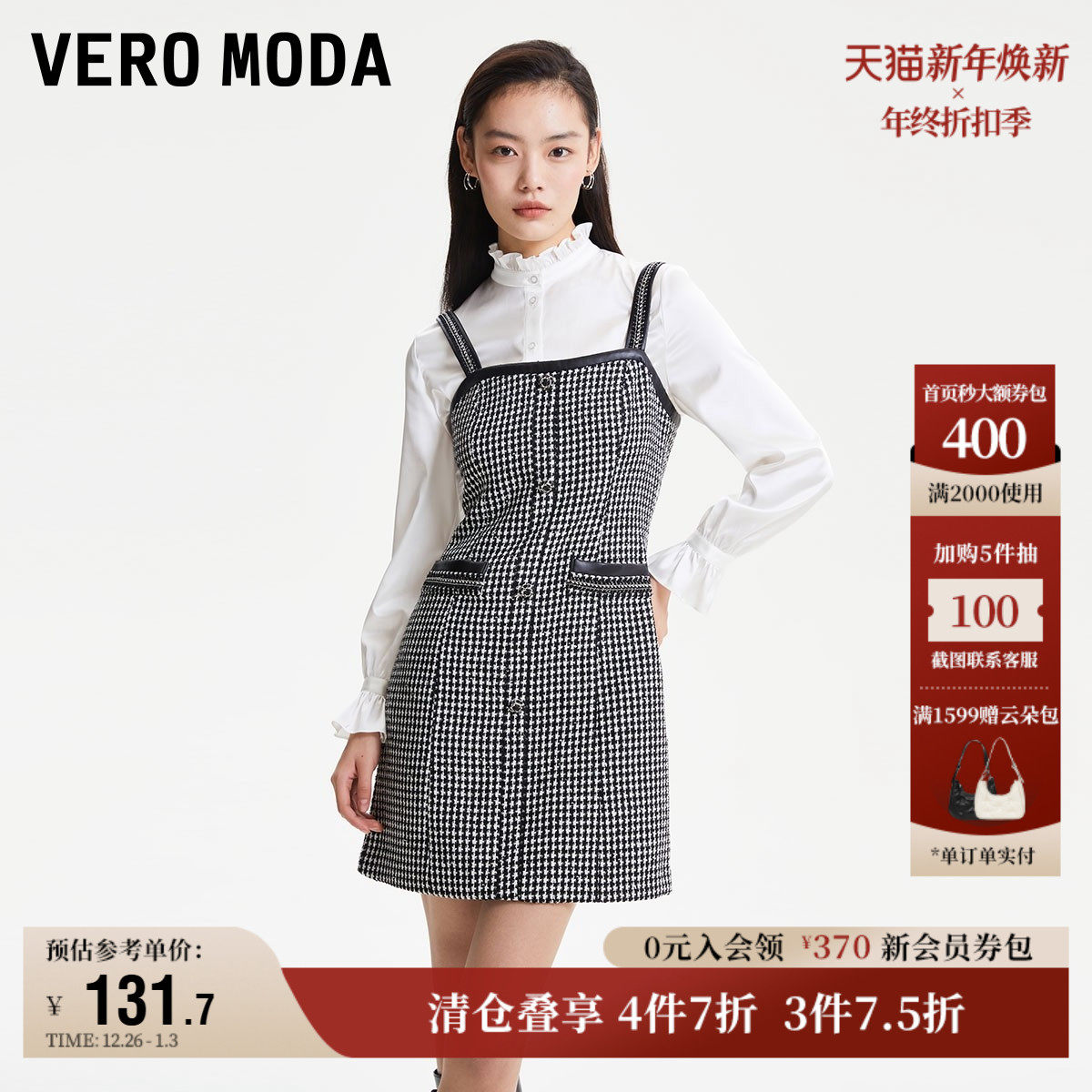 Vero Moda奥莱连衣裙子秋冬清仓甜酷小香风优雅千鸟格吊带裙女