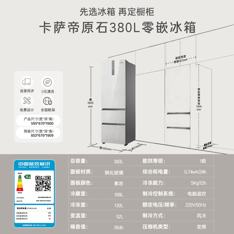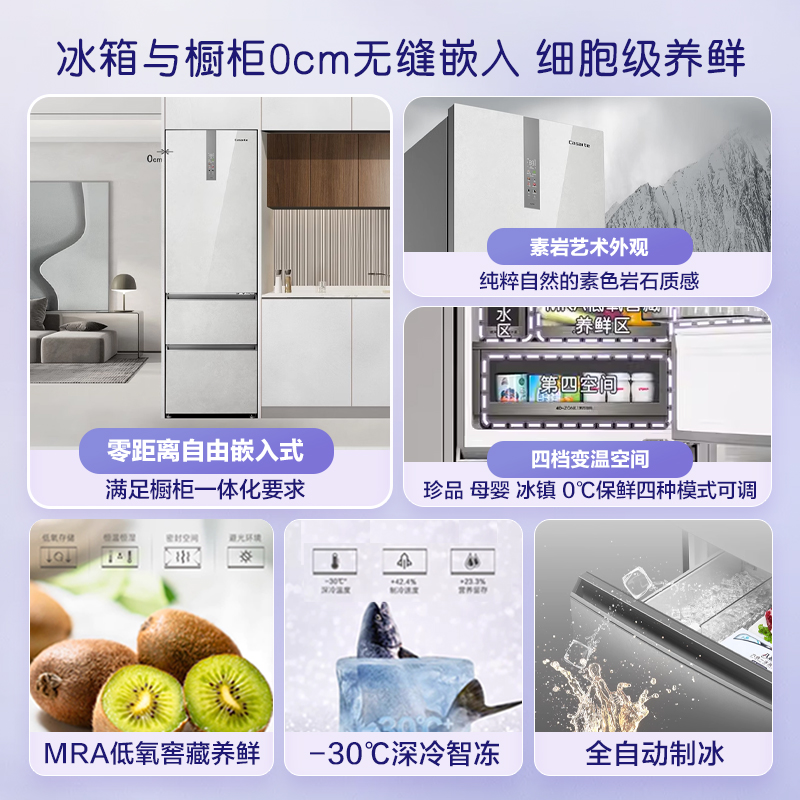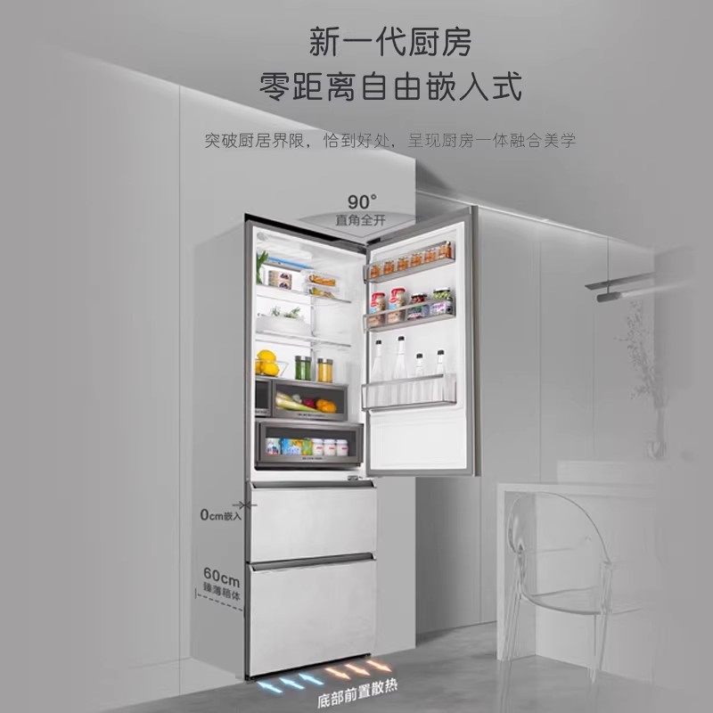 以旧换新卡萨帝380L一级制冰三门零嵌入小型风冷无霜家用超薄冰箱