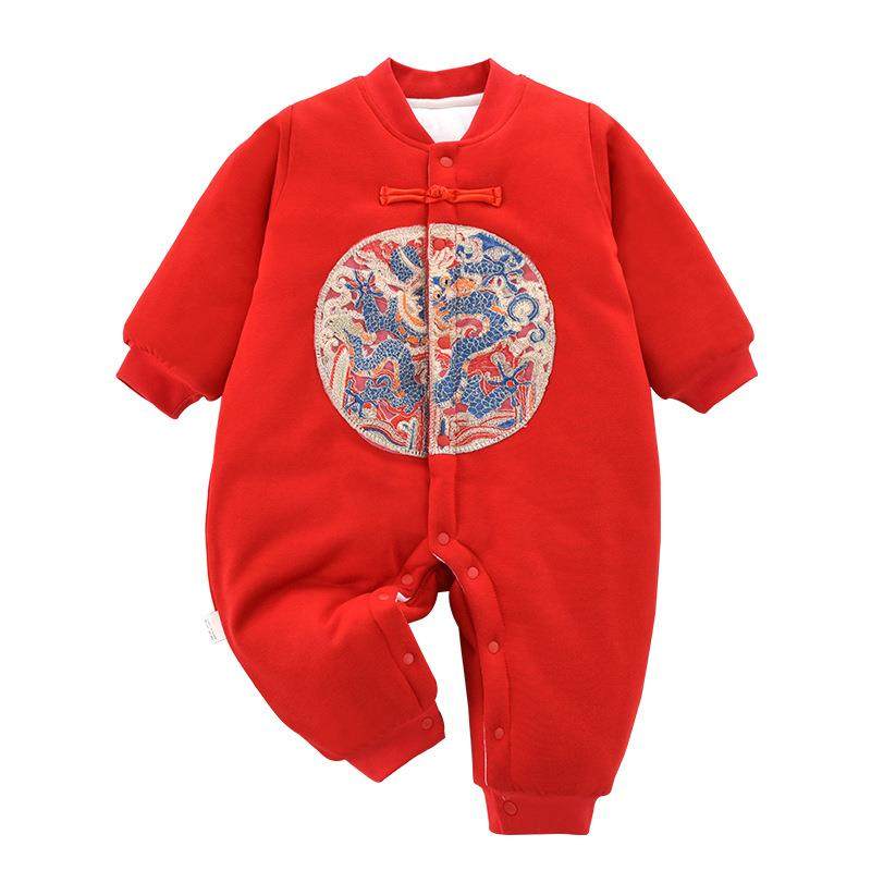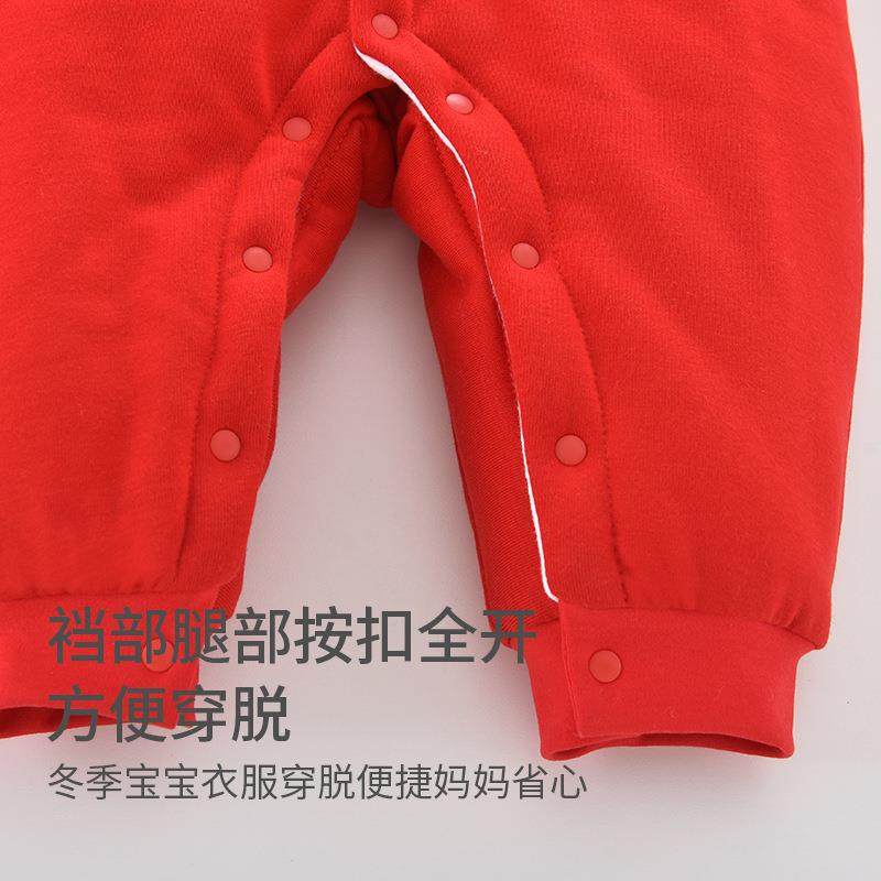 婴儿夹棉连体衣秋冬季周岁喜庆满月百日宴男女宝宝衣服厚款红色