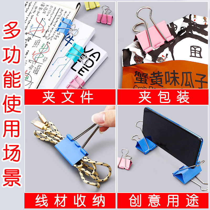 晨光长尾夹彩色黑色文件夹子多功能金属燕尾夹发票据省力办公用品