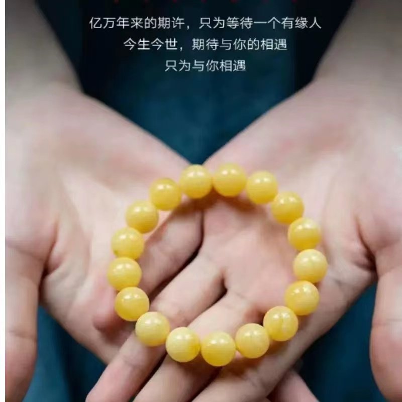 爆款平替仿白花蜜蜜蜡手链琥珀鸡油黄蜜蜡手串男女款礼物二代款