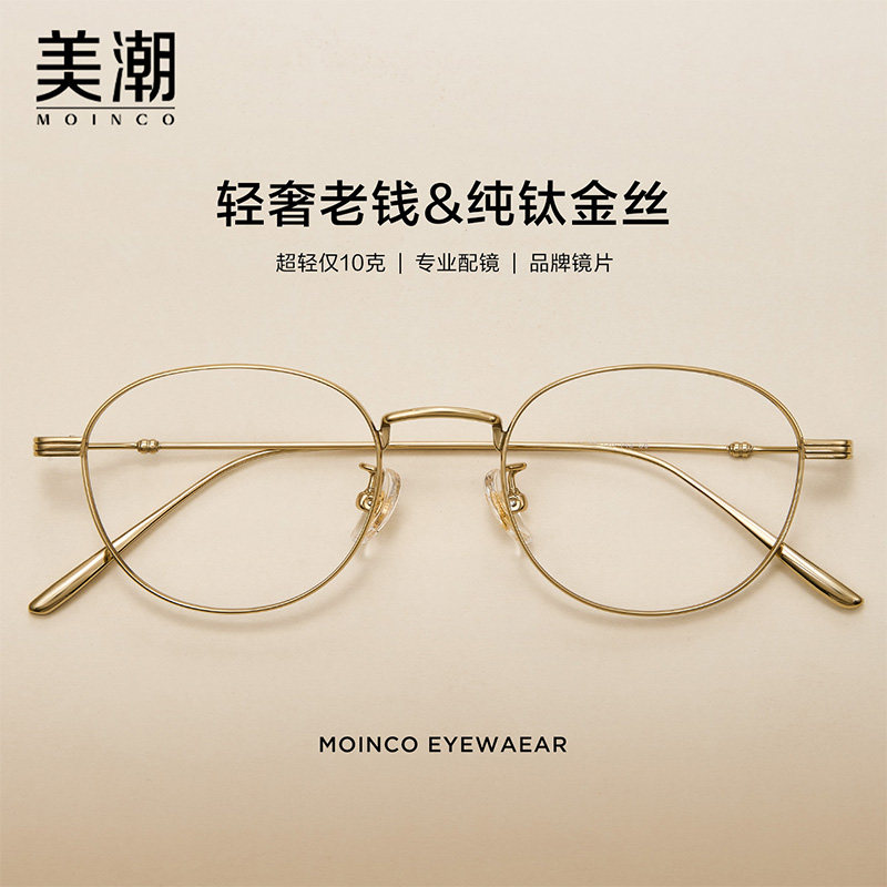 复古老钱风眼镜近视女度数可配防蓝光镜片高智金丝圆框纯钛眼睛架