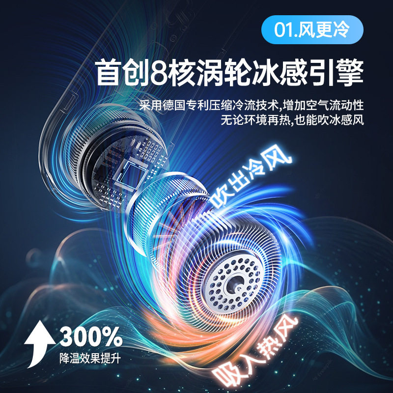 制冷小风扇便携空调成人儿童挂脖风扇冰敷风扇家用静音数显多功能