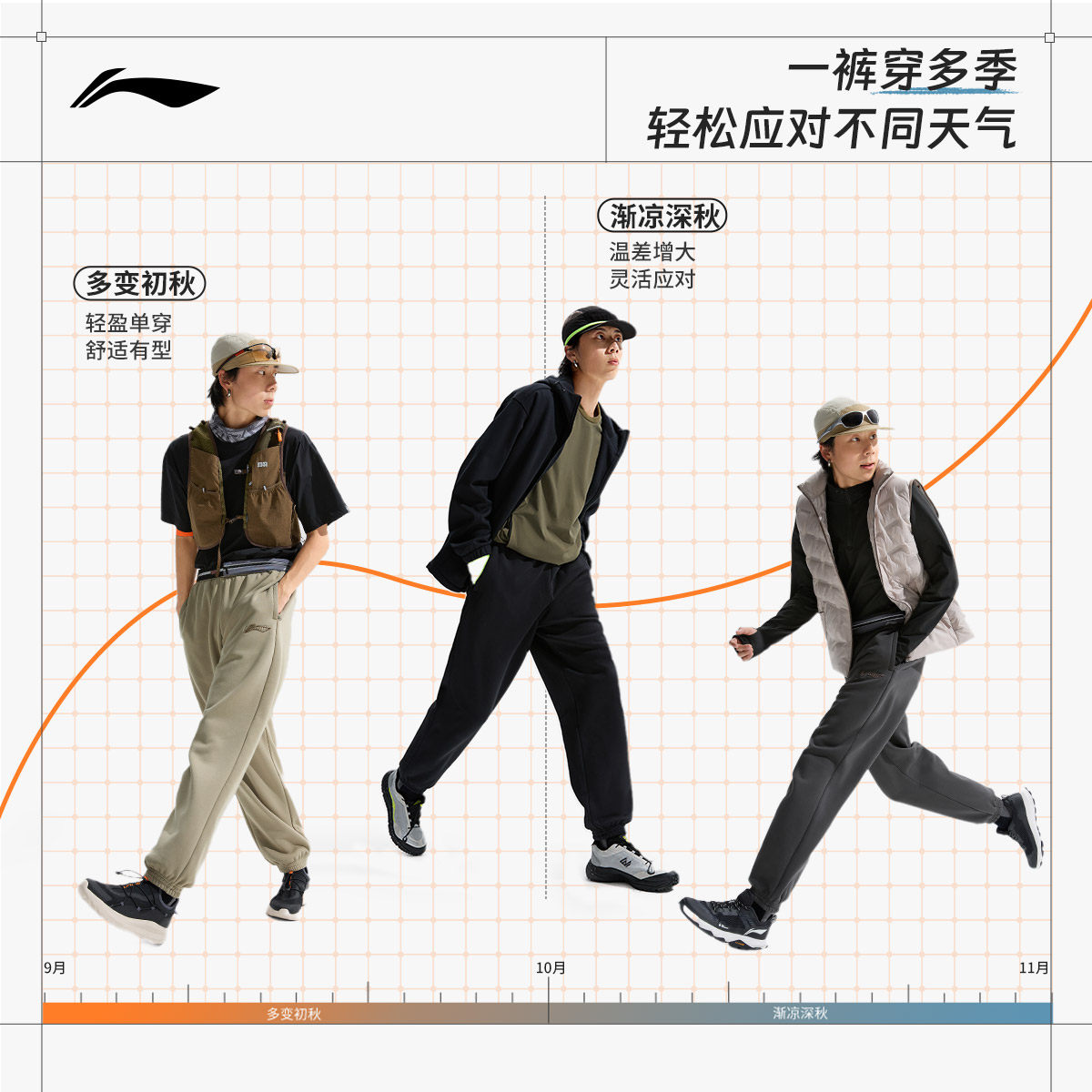 李宁卫裤新款裤子秋冬加绒男士休闲裤宽松刺绣针织加绒长裤运动裤