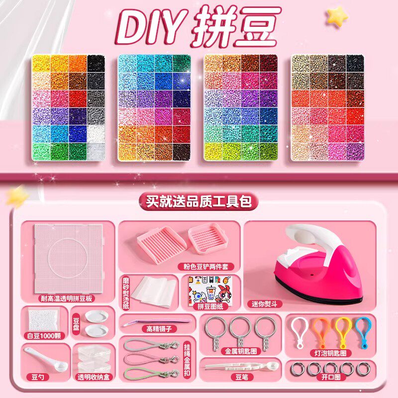 拼豆手工diy材料包女孩玩具全套工具套装融合豆笔熨斗拼豆大礼包