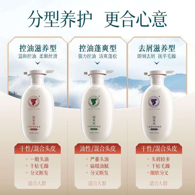 长发小寨淘米洗发水控油蓬松去屑柔顺洗头膏露滋养国货植萃留香