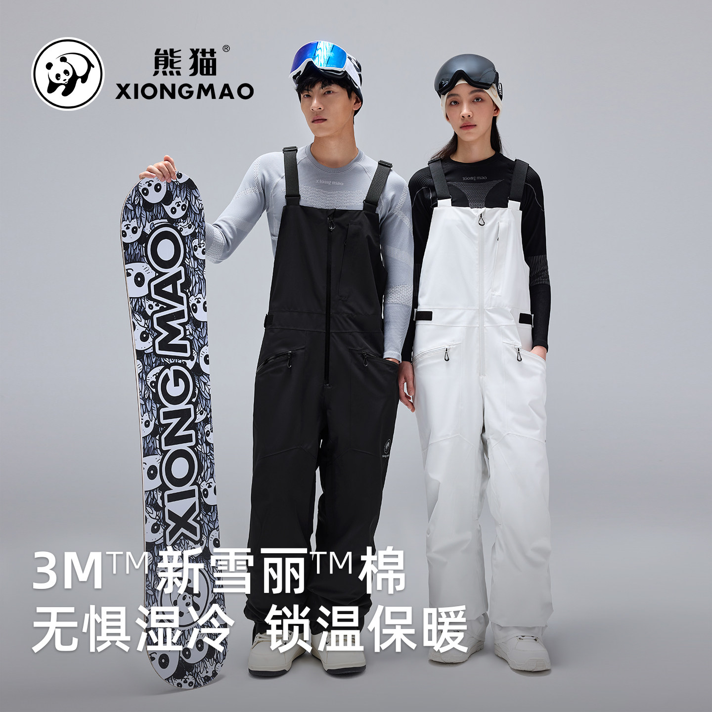 熊猫户外3M新雪丽棉滑雪背带裤2025新款秋冬防风防雪运动保暖裤子