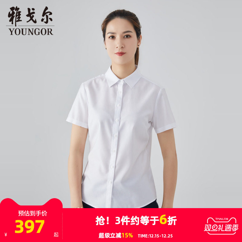 雅戈尔女士短袖衬衫夏季新品商务休闲免烫白衬衣女