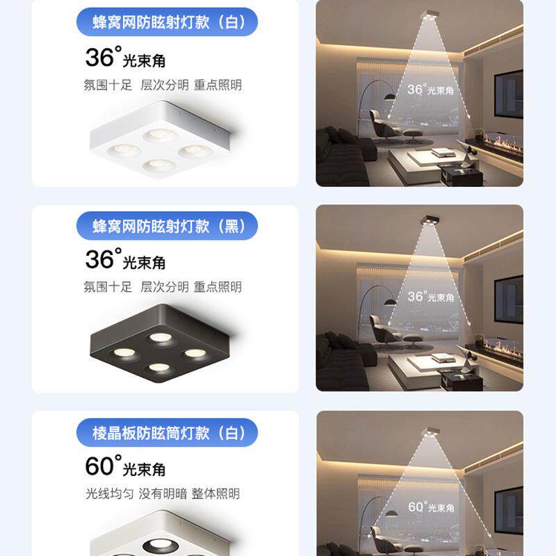 华夫饼超薄斗胆灯明装客厅双四头筒射全光谱无主灯