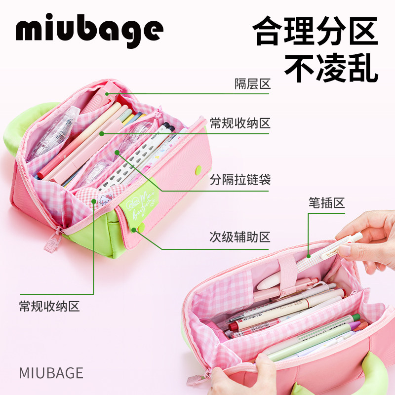 麦贝佳笔袋大容量香蕉拎手吐司分仓笔袋双拉链高颜值大开口简约