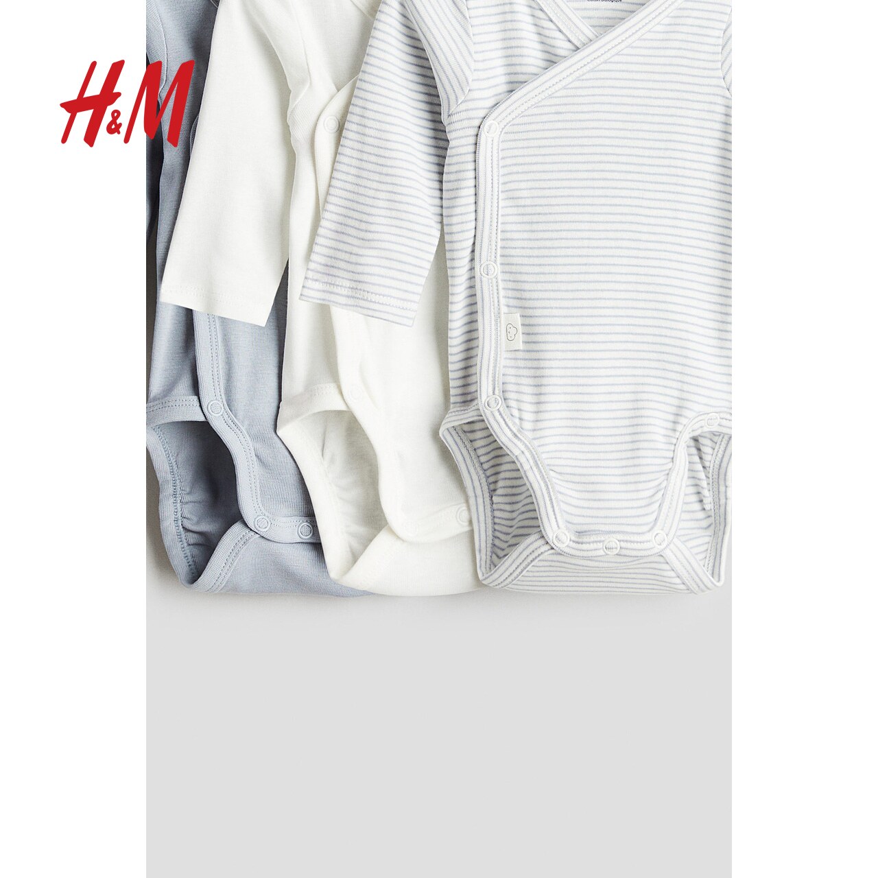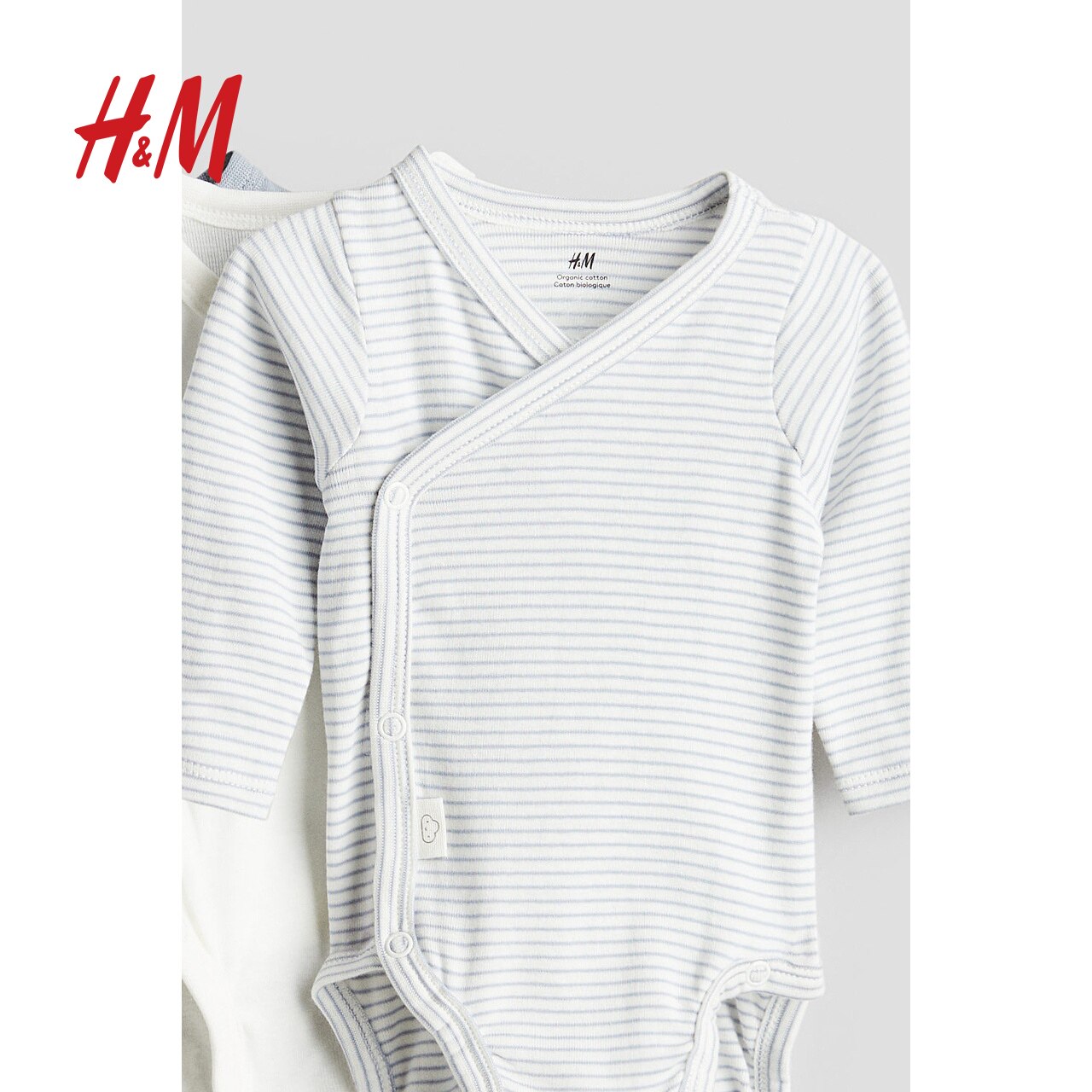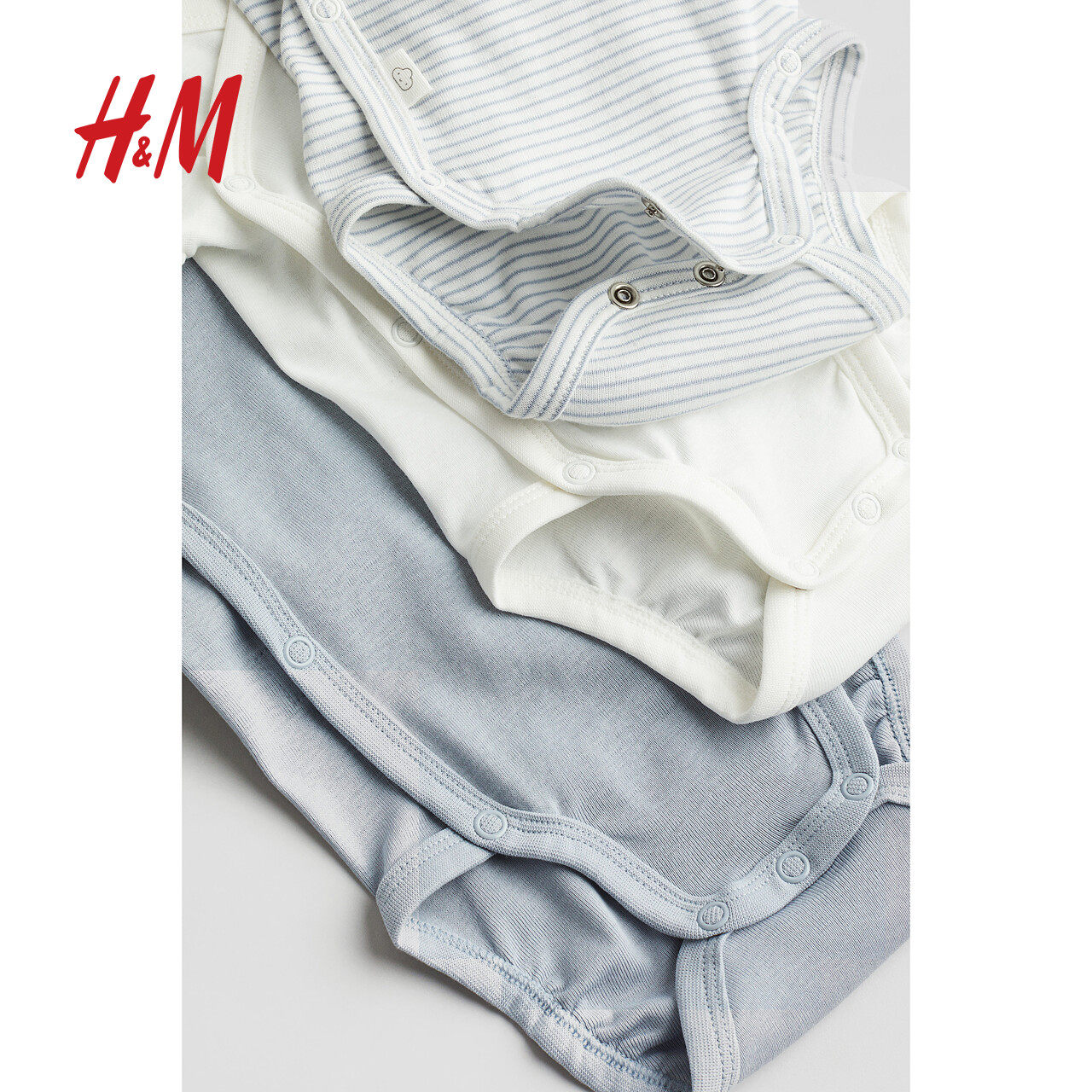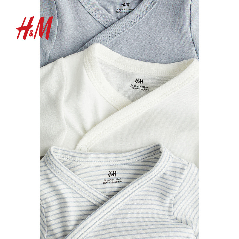 HM童装新生儿男婴女婴连体衣3件装春季棉质汗布长袖哈衣0694298