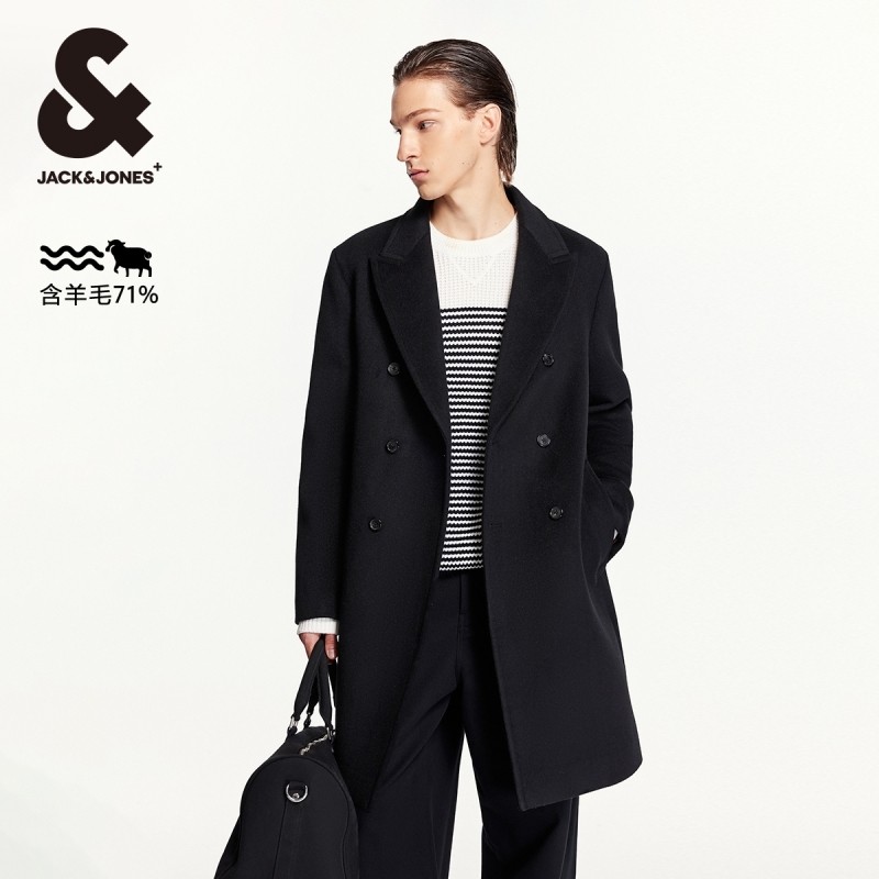 杰克琼斯秋季款男士毛呢大衣纽扣门襟一粒扣纯色帅气羊毛外套男装