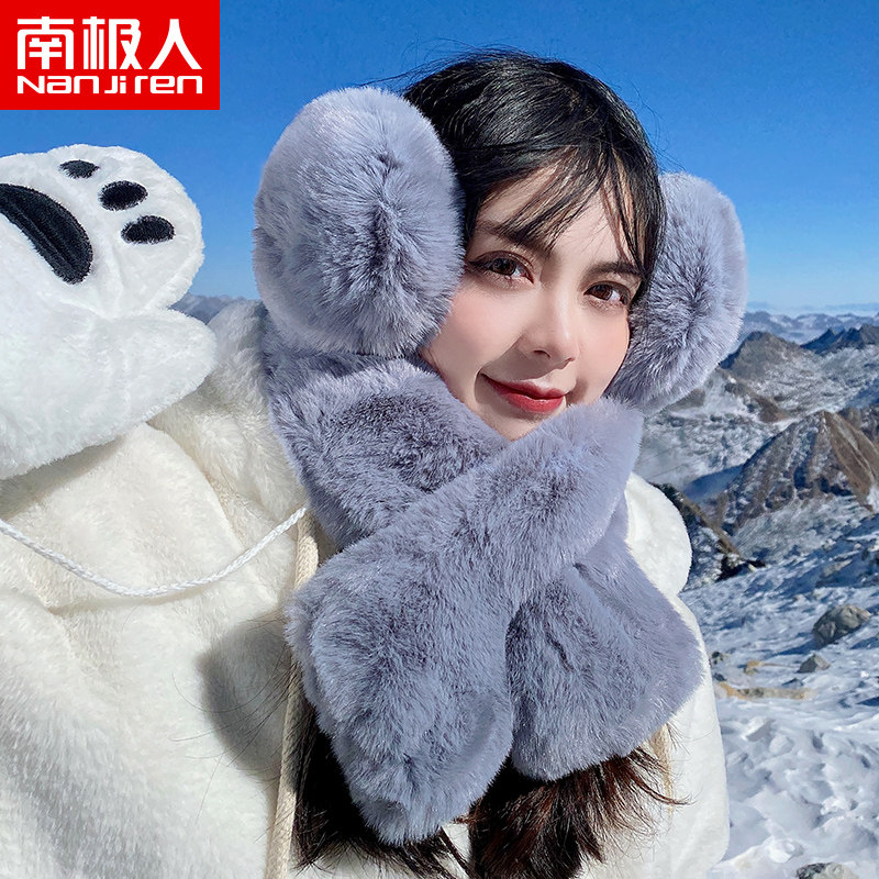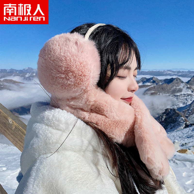 保暖大毛绒耳罩女冬季户外防寒围脖套装加厚护耳套可爱耳包围巾A