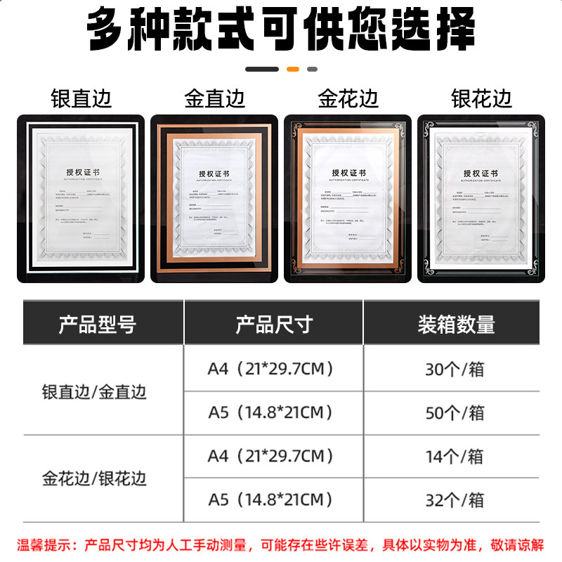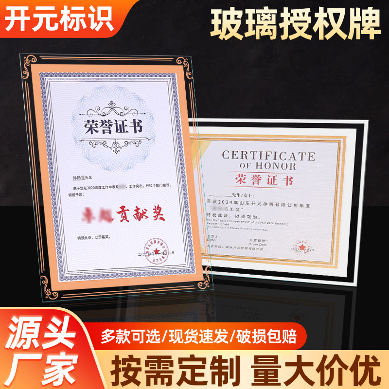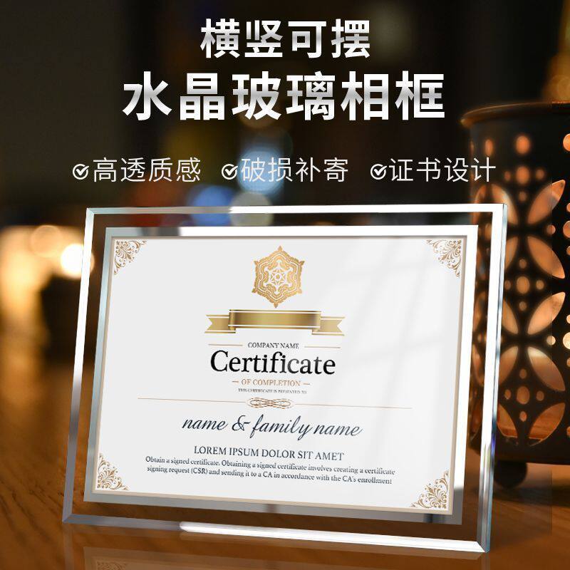 水晶玻璃新款上市相框摆台a4纸证件书授权书专利证框裱聘书展示框